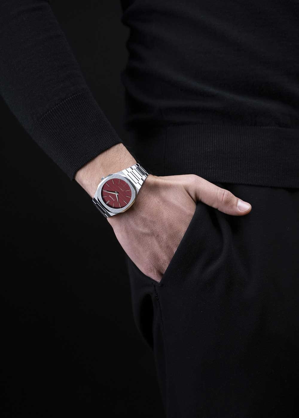 Часы D1 Milano UTBJ11 — это уникальные кварцевые часы, которые подчеркнут ваш изысканный стиль. Эти наручные часы из коллекции Ultra Thin с эффектным монохромным дизайном станут выразительным акцентом вашего образа. Корпус диаметром 40 мм из нержавеющей стали придает часам современный и утонченный вид. Красный циферблат метками в виде штрихов, а серебристые хроматические стрелки и индексы создают стильный контраст, подчёркивая элегантность модели. Задняя крышка из нержавеющей стали закреплена на 8-х винтах и дополнена индивидуальным серийным номером, что подчеркивает уникальность каждого экземпляра. Стальной браслет с раскладной застёжкойРаскладная застёжкаТакой тип застёжки используется только на браслетах из металла. Она никогда не раскрывается полностью, происходит разделение на 2 и более частей. Раскладывающая застёжка снизит вероятность потери часов к минимуму. обеспечивает надежность и комфорт в повседневном использовании. Сапфировое стеклоСапфировое стеклоПрочный и надёжный материал из кристалла сапфира синтетического происхождения, характеризующийся особой твёрдостью и устойчивостью к царапинам и повреждениям. с антибликовым покрытием защищает циферблат, а водозащита до 50WR делает эти часы практичным выбором для любых условий. Благодаря калибру Miyota 1L22, они отличаются точностью и надежностью. Эти итальянские часы представляют собой идеальное сочетание традиционного мастерства и инновационного подхода, воплощая в себе новый взгляд на классическую элегантность.