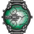 Мужские кварцевые часы Diesel Mr. Daddy 2.0 DZ7488 — это многофункциональный аксессуар, сочетающий в себе стиль и технические возможности. Модель оснащена хронографомХронографФункция позволяет измерять отрезки времени с особой точностью: часы, минуты, секунды. Верным признаком хронографа является наличие на циферблате 3 дополнительных окошек-счётчиков. с секундомеромСекундомерСекундоме́р — прибор, способный измерять интервалы времени с точностью до долей секунды., что делает её удобной для измерения времени с высокой точностью. Циферблат зеленого цвета, а его дизайн включает штриховые метки, а также окошко даты в положении 3 часов. Защиту циферблата обеспечивает Минеральное стеклоМинеральное стеклоМинеральное стекло представляет собой искусственно выращенный минерал кварца. Такое стекло отличается особой устойчивостью к повреждениям и царапинам. Уступает по некоторым качествам сапфировому стеклу., устойчивое к мелким повреждениям. Корпус диаметром 54 мм выполнен из стали с чёрным PVD-покрытиемPVDУльтратонкое покрытие наносится в технике вакуумного напыления, сочетает в себе нитрид титана особой прочности со слоем золота или оксида хрома. Несёт в себе декоративную или защитную функцию., включающим матовые и полированные детали. Стальной браслет с чёрным PVD-покрытиемPVDУльтратонкое покрытие наносится в технике вакуумного напыления, сочетает в себе нитрид титана особой прочности со слоем золота или оксида хрома. Несёт в себе декоративную или защитную функцию. оснащён раскладной застёжкойРаскладная застёжкаТакой тип застёжки используется только на браслетах из металла. Она никогда не раскрывается полностью, происходит разделение на 2 и более частей. Раскладывающая застёжка снизит вероятность потери часов к минимуму. с двумя кнопками, обеспечивающей комфорт и надёжную фиксацию на запястье. Водонепроницаемость 30WR позволяет использовать модель при мытье рук или под лёгким дождём. Эти часы станут универсальным аксессуаром для тех, кто ценит сочетание функциональности, эстетики и надёжности — идеальный выбор для повседневного использования и активного образа жизни.