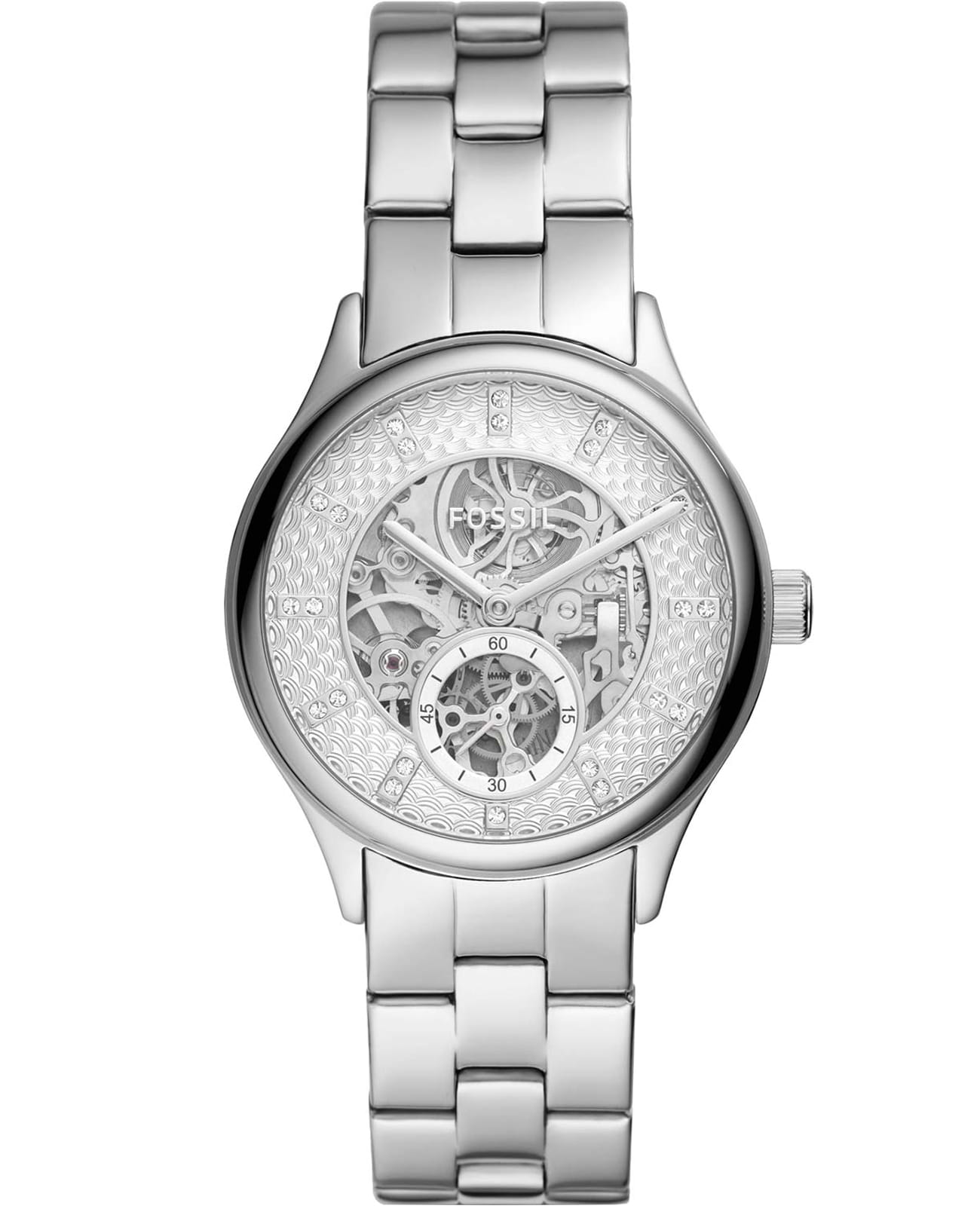Женские американские часы Fossil Bannon BQ3649, механический механизм (автоматический калибр) с высокой точностью. Класс водозащиты: 50 метров, позволит защитить корпус от случайных брызг или капель дождя. Корпус часов изготовлен из стали, серебристого цвета.