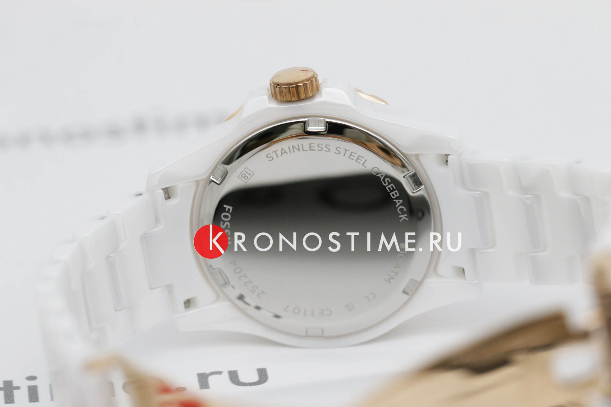 Женские наручные часы Fossil на браслете Fossil FB-01 CE1107, кварцевый механизм с высокой точностью. Класс водозащиты: 100 метров, позволит плавать, нырять и заниматься другими водными видами спорта. Стрелки с люминесцентным покрытиемЛюминесцентное покрытиеПозволяет считывать показания времени в темноте. Производители наносят на стрелки, часовые индексы, безель или поверхность циферблата светонакопительный состав, дающий холодное свечение.. Циферблат украшен кристаллами. Корпус часов изготовлен из стали. Керамический браслет с раскладной застёжкойРаскладная застёжкаТакой тип застёжки используется только на браслетах из металла. Она никогда не раскрывается полностью, происходит разделение на 2 и более частей. Раскладывающая застёжка снизит вероятность потери часов к минимуму..