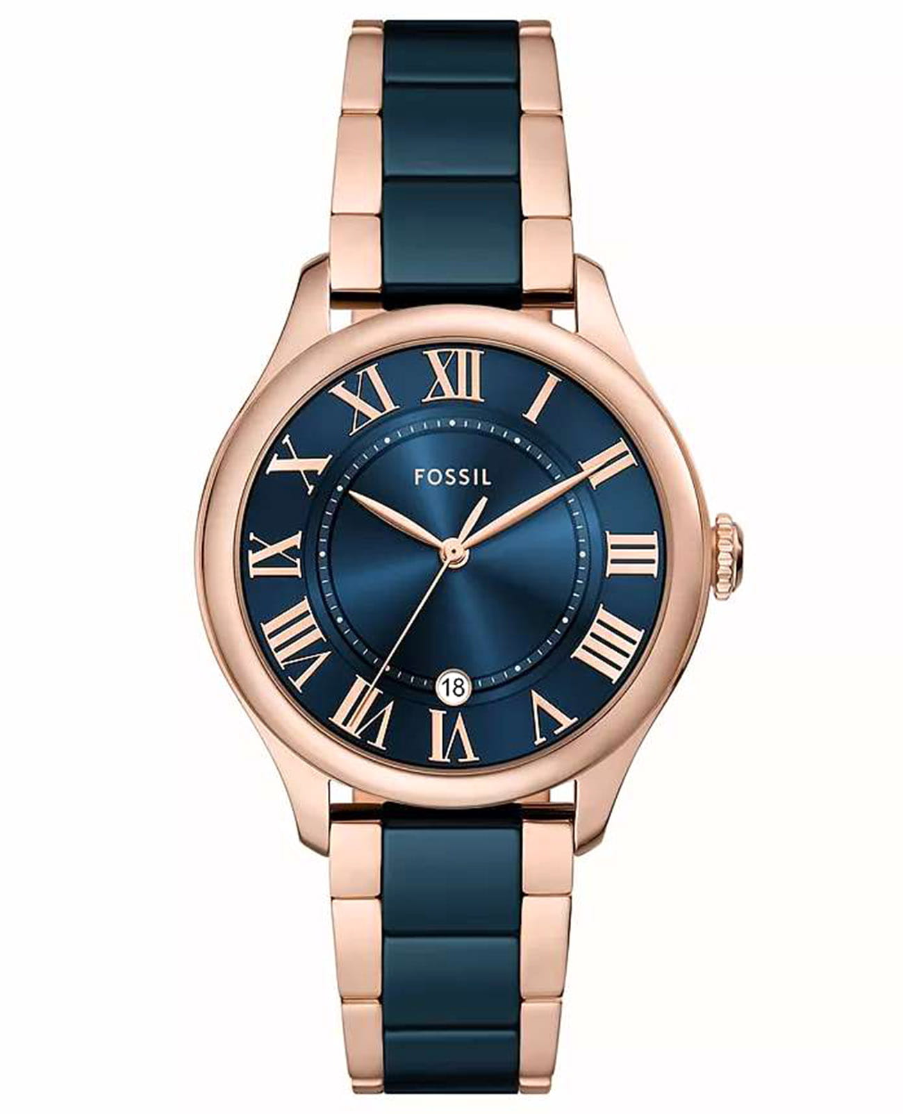 Женские кварцевые часы Fossil — это элегантный аксессуар, сочетающий стиль и надежность. Модель CE1134 выполнена в круглом корпусе диаметром 38 мм из нержавеющей стали с IP-покрытиемIP-покрытиеМетод ионного напыления. Демонстрирует повышенную устойчивость к истиранию, окислению и химическим веществам. Под воздействием высокого давления и температуры около 1500°C молекулы металла надёжно соединяются с частицами корпуса часов.. Циферблат синего цвета оформлен индексами и стрелками. Окошко даты расположено в положении 6 часов. Циферблат защищён минеральным стекломМинеральное стеклоМинеральное стекло представляет собой искусственно выращенный минерал кварца. Такое стекло отличается особой устойчивостью к повреждениям и царапинам. Уступает по некоторым качествам сапфировому стеклу.. Часы оснащены браслетом из керамики и стали с IP-покрытиемIP-покрытиеМетод ионного напыления. Демонстрирует повышенную устойчивость к истиранию, окислению и химическим веществам. Под воздействием высокого давления и температуры около 1500°C молекулы металла надёжно соединяются с частицами корпуса часов. на застёжке «бабочка» с кнопкамиЗастёжка "бабочка"Такой вид застёжки дополняется предохранителями, помогающими избежать случайного раскрытия браслета. Обладают изящным исполнением. . Водонепроницаемость 50 м позволяет использовать часы для плавания и повседневного ношения. Идеальный выбор для тех, кто ценит американское качество и безупречный дизайн.