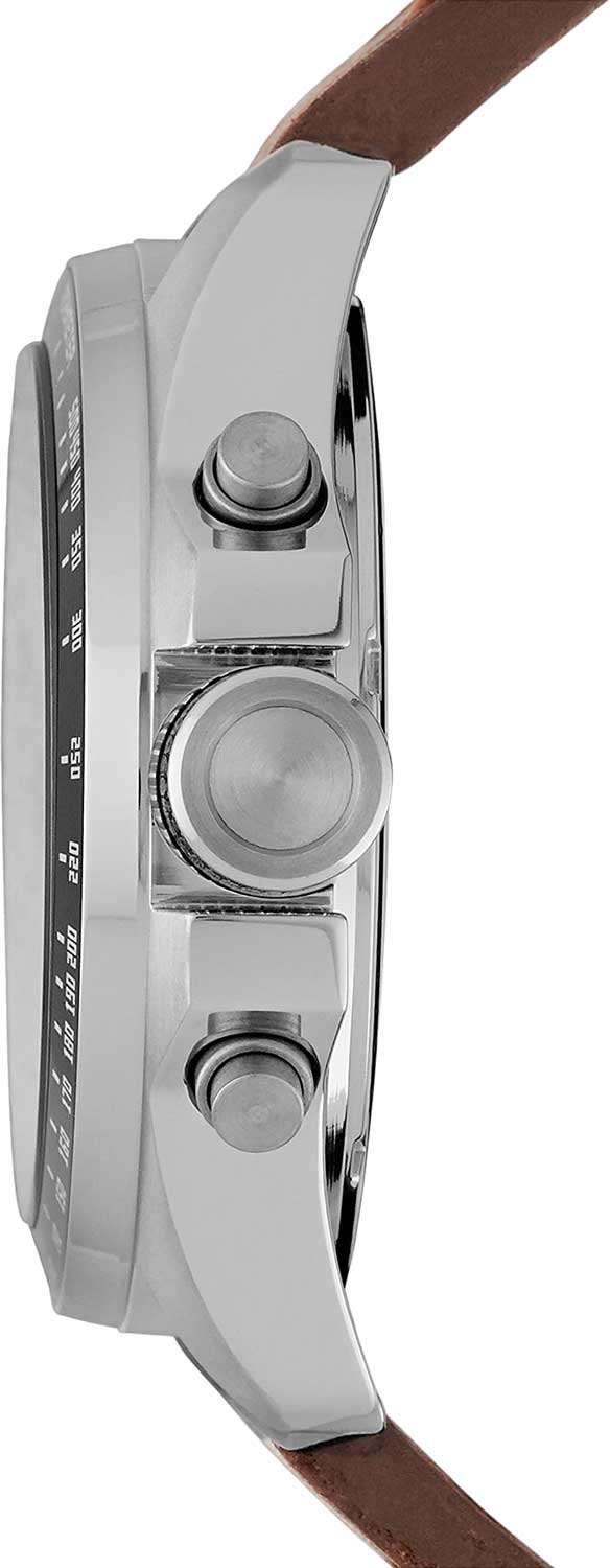 Часы Fossil Decker CH2885 часы-хронографХронографФункция позволяет измерять отрезки времени с особой точностью: часы, минуты, секунды. Верным признаком хронографа является наличие на циферблате 3 дополнительных окошек-счётчиков. с секундомеромСекундомерСекундоме́р — прибор, способный измерять интервалы времени с точностью до долей секунды. идеально подойдут для тех, кто ценит классический стиль, дополненный современными деталями, и ищет аксессуар, способный подчеркнуть их индивидуальность и элегантность. Эти мужские наручные часы производятся в США и оснащены надежным кварцевым механизмом, который обеспечивает точность и стабильность в работе. Корпус из нержавеющей стали диаметром 44 мм гарантирует долговечность и придает часам стильный и современный вид. Метки в виде штрихов придают циферблату классический акцент, а рифленая заводная головка облегчает настройку времени. Метки с люминесцентным покрытиемЛюминесцентное покрытиеПозволяет считывать показания времени в темноте. Производители наносят на стрелки, часовые индексы, безель или поверхность циферблата светонакопительный состав, дающий холодное свечение. позволяют легко считывать время даже в условиях низкой освещенности. Кожаный ремешок на стандартной застёжке обеспечивает комфортное ношение и надежную фиксацию на запястье. Водозащита 100 метров позволит плавать, нырять и заниматься другими водными видами спорта, а минеральное стеклоМинеральное стеклоМинеральное стекло представляет собой искусственно выращенный минерал кварца. Такое стекло отличается особой устойчивостью к повреждениям и царапинам. Уступает по некоторым качествам сапфировому стеклу. оберегает циферблат от царапин и повреждений. Окошко даты находится в положении 4 часа. ТахиметрТахиметрРазмеченная шкала, располагается на ободке или безеле часов. Тахиметр позволяет рассчитать скорость на определённом участке пути, расстояние измеряется в километрах или милях. по внешнему краю.