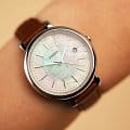 Женские американские часы Fossil Carlie ES5090, кварцевый механизм с высокой точностью. Класс водозащиты: 30 метров, позволит защитить корпус от случайных брызг или капель дождя. Корпус часов изготовлен из стали, серебристого цвета.