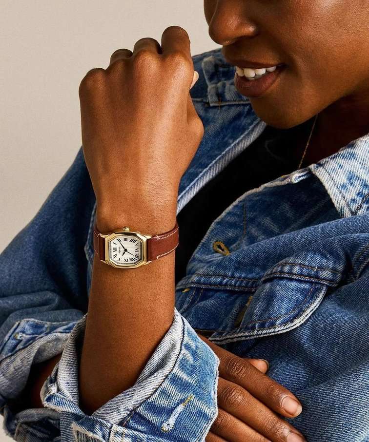 Fossil ES5364 – это изысканные женские наручные часы, которые прекрасно сочетают в себе элегантность и современный стиль. Изготовленные в США, эти часы оснащены надежным кварцевым механизмом, гарантирующим точность и долговечность. Корпус выполнен из стали с золотистым IP-покрытиемIP-покрытиеМетод ионного напыления. Демонстрирует повышенную устойчивость к истиранию, окислению и химическим веществам. Под воздействием высокого давления и температуры около 1500°C молекулы металла надёжно соединяются с частицами корпуса часов., что придает ему дополнительную стойкость и изысканный внешний вид. Бежевый циферблат украшен изящным рисунком «елочка», создающим интересный визуальный эффект. Метки в виде римских цифр подчеркивают классический стиль, а рифленая заводная головка добавляет функциональности. Кожаный коричневый ремешок с бежевой строчкой и классической застежкой обеспечивает удобство и надежность при ношении. Часы обладают водозащитой 30WR, что позволяет защитить их от случайных брызг. Минеральное стеклоМинеральное стеклоМинеральное стекло представляет собой искусственно выращенный минерал кварца. Такое стекло отличается особой устойчивостью к повреждениям и царапинам. Уступает по некоторым качествам сапфировому стеклу. надежно защищает циферблат от царапин. Габаритные размеры часов составляют 27 мм в диаметре, ширина браслета 16 мм и длина 185 мм, что делает их компактными и изящными, идеально подходящими для повседневного использования или особых случаев. Эти часы станут отличным аксессуаром, подчеркивающим ваш стиль и индивидуальность.