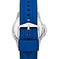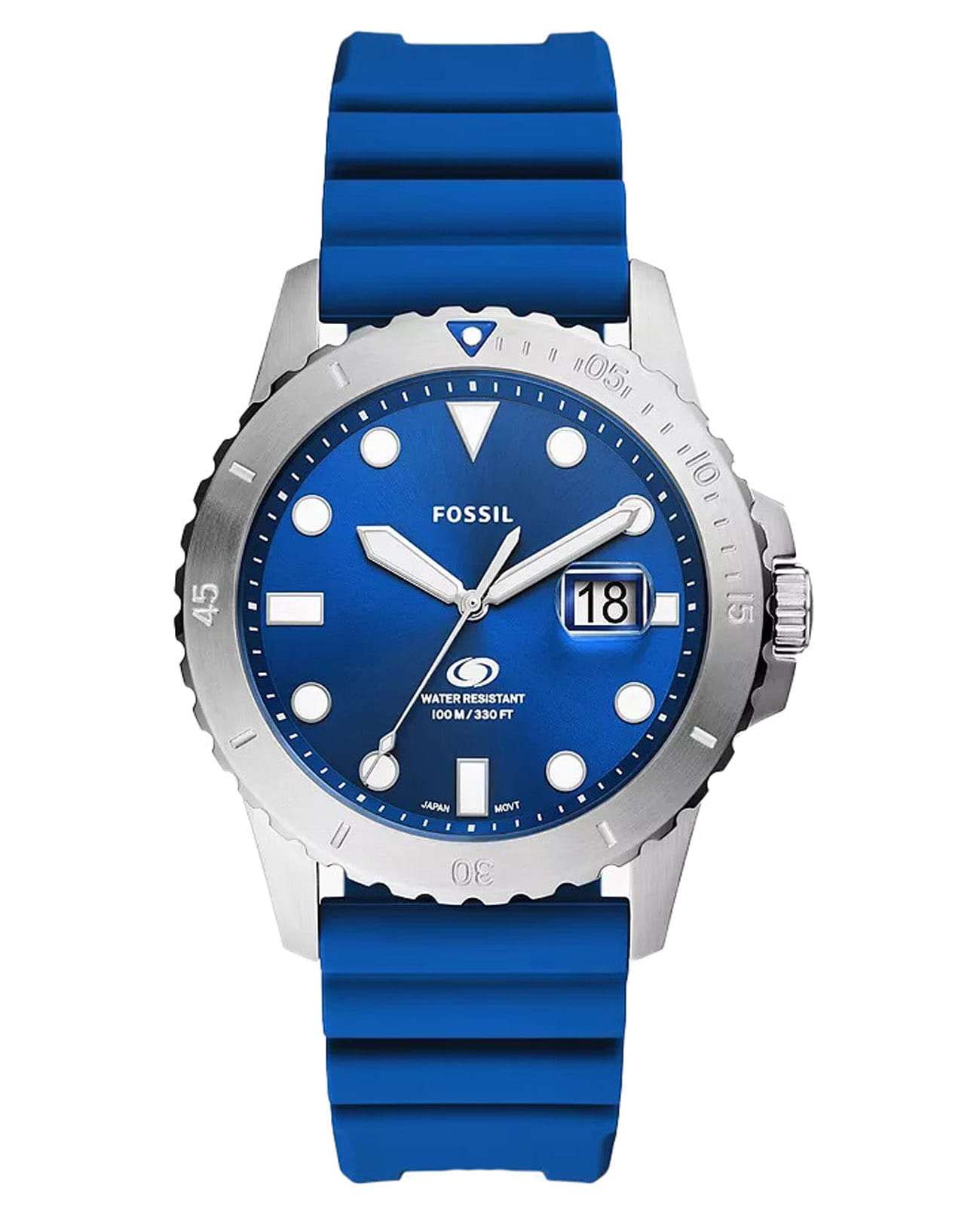 Мужские американские часы с минеральным стекломМинеральное стеклоМинеральное стекло представляет собой искусственно выращенный минерал кварца. Такое стекло отличается особой устойчивостью к повреждениям и царапинам. Уступает по некоторым качествам сапфировому стеклу. Fossil Blue FS5998, кварцевый механизм с высокой точностью. Корпус часов изготовлен из нержавеющей стали. Вращающийся безельБезельВнешний ободок, закрепляющий стекло. В спортивных часах так называется поворотное кольцо с делениями на циферблате, выполняет роль таймера – замеряет отрезки времени на шкале. Неподвижный безель – элемент декора. Однонаправленно вращающийся безель на дайверских часах позволяет фиксировать моменты погружения и выныривания на поверхность.. Метки и стрелки с люминесцентным покрытиемЛюминесцентное покрытиеПозволяет считывать показания времени в темноте. Производители наносят на стрелки, часовые индексы, безель или поверхность циферблата светонакопительный состав, дающий холодное свечение.. Окошко даты находится в положении 3 часа. Рифленая заводная головка с защитой. Класс водозащиты: 100 метров, позволит плавать, нырять и заниматься другими водными видами спорта. Силиконовый ремешок на стандартной застёжке.