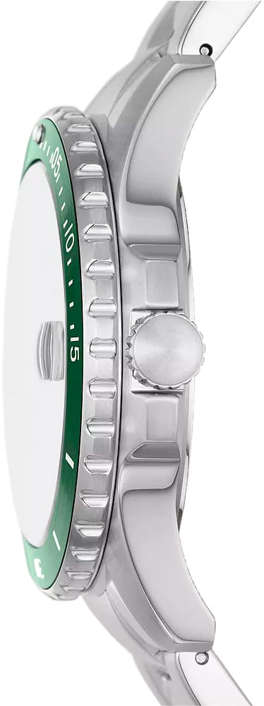 Мужские наручные часы с надёжным кварцевым механизмом Fossil Blue FS6033. Класс водозащиты: 100 метров, позволит плавать, нырять и заниматься другими водными видами спорта. Корпус и браслет часов изготовлены из нержавеющей стали. Окошко даты находится в положении 3 часа. Стальной браслет на раскладной застёжкеРаскладная застёжкаТакой тип застёжки используется только на браслетах из металла. Она никогда не раскрывается полностью, происходит разделение на 2 и более частей. Раскладывающая застёжка снизит вероятность потери часов к минимуму.. Стрелки и метки с люминесцентным покрытиемЛюминесцентное покрытиеПозволяет считывать показания времени в темноте. Производители наносят на стрелки, часовые индексы, безель или поверхность циферблата светонакопительный состав, дающий холодное свечение.. Вращающийся безельБезельВнешний ободок, закрепляющий стекло. В спортивных часах так называется поворотное кольцо с делениями на циферблате, выполняет роль таймера – замеряет отрезки времени на шкале. Неподвижный безель – элемент декора. Однонаправленно вращающийся безель на дайверских часах позволяет фиксировать моменты погружения и выныривания на поверхность. с PVD-покрытиемPVDУльтратонкое покрытие наносится в технике вакуумного напыления, сочетает в себе нитрид титана особой прочности со слоем золота или оксида хрома. Несёт в себе декоративную или защитную функцию..
