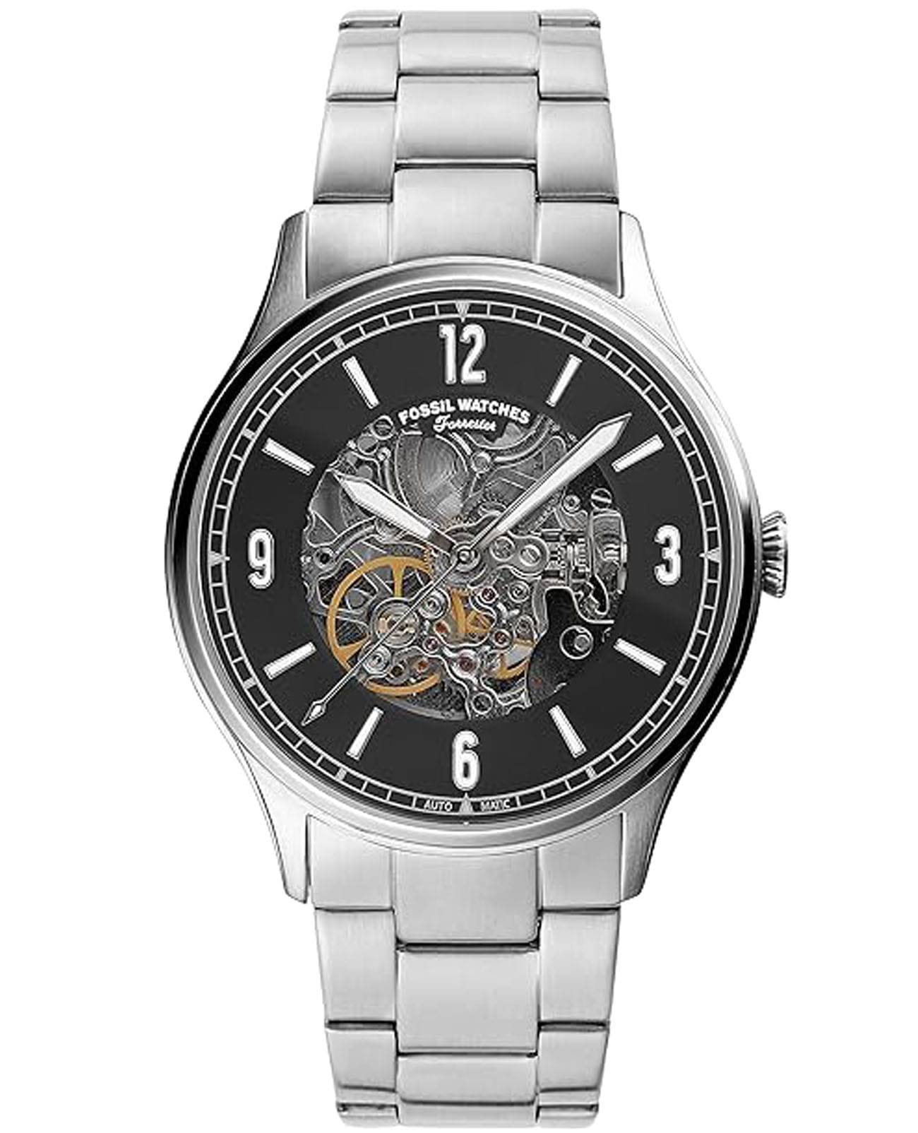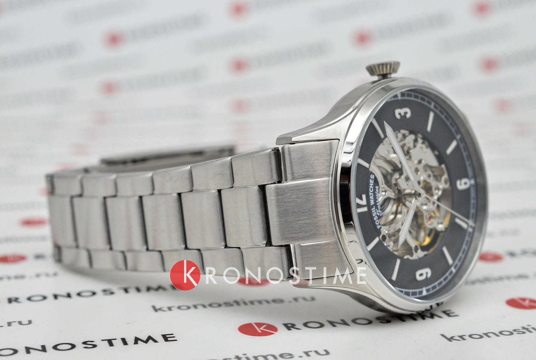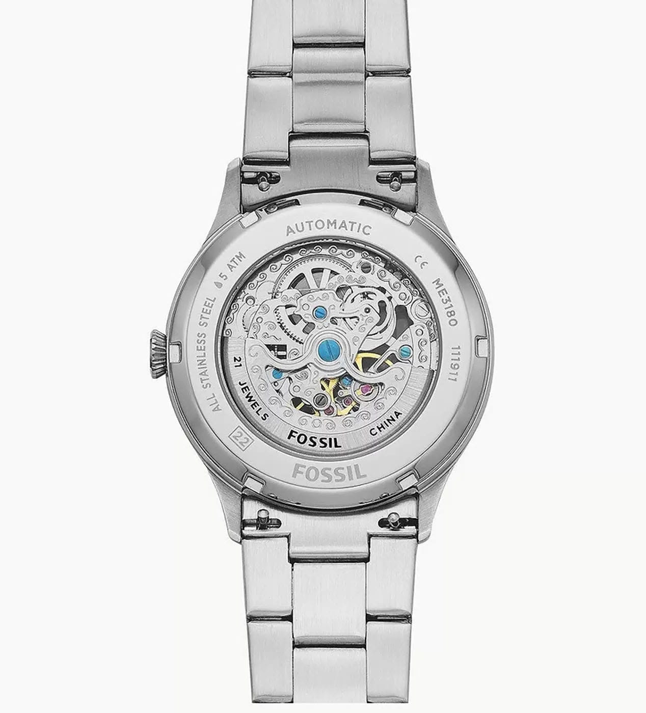 Мужские механические часы-скелетоны Fossil ME3180 — это стильный аксессуар, сочетающий в себе элегантность и функциональность. Корпус выполнен из нержавеющей стали, диаметром 42 мм, что придаёт ей устойчивость к царапинам и благородный внешний вид. Циферблат защищен минеральным стекломМинеральное стеклоМинеральное стекло представляет собой искусственно выращенный минерал кварца. Такое стекло отличается особой устойчивостью к повреждениям и царапинам. Уступает по некоторым качествам сапфировому стеклу., устойчивым к повреждениям. Стрелки имеют люминесцентное покрытиеЛюминесцентное покрытиеПозволяет считывать показания времени в темноте. Производители наносят на стрелки, часовые индексы, безель или поверхность циферблата светонакопительный состав, дающий холодное свечение., обеспечивающее отличную читаемость даже в условиях слабого освещения. Водонепроницаемость 50 метров позволит защитить корпус от случайных брызг или капель дождя. Стальной браслет на раскладной застёжкеРаскладная застёжкаТакой тип застёжки используется только на браслетах из металла. Она никогда не раскрывается полностью, происходит разделение на 2 и более частей. Раскладывающая застёжка снизит вероятность потери часов к минимуму. обеспечиваюет комфорт и надёжную фиксацию на запястье. Эти часы станут универсальным аксессуаром для тех, кто ценит сочетание стиля, функциональности и надёжности — идеальный выбор для повседневной носки и активного образа жизни.