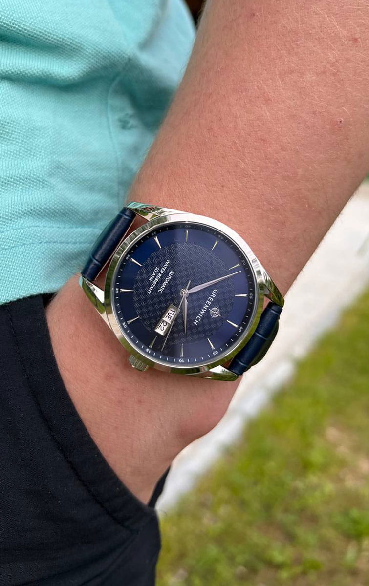 Мужские часы с минеральным стекломМинеральное стеклоМинеральное стекло представляет собой искусственно выращенный минерал кварца. Такое стекло отличается особой устойчивостью к повреждениям и царапинам. Уступает по некоторым качествам сапфировому стеклу. Greenwich Good Luck Classic GW 074.16.36, представляют собой классический вариант для повседневной носки. В центральной части циферблата — отличительная черта моделей этой серии: гильоше, объемные линии которого напоминают волны. Обратите внимание на форму пластины, где крепятся накладные риски: она сделана в форме латинской буквы G, первой буквы в названии бренда. Часы характеризуются традиционными формами, лаконичным исполнением, что делает модель элегантным дополнением к деловому костюму. Сквозь прозрачную заднюю крышку вы увидите детали механизма TMI с декорированным ротором: на нем выгравировано изображение символа английских моряков — парусника. Ремешок на стандартной застёжке выполнен из натуральной кожи с прошивкой в тон. Дизайн, актуальный для любого современного образа, и надежность используемых материалов делают автоматические часы Greenwich удобным и стильным аксессуаром на каждый день. Окошко даты и дня недели находится в положении 3 часа. Класс водозащиты: 100 метров, позволит плавать, нырять и заниматься другими водными видами спорта.