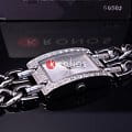 Яркий блестящий браслет с двумя линиями звеньев. Стальной корпус прямоугольной формы. Россыпь из кристаллов добавляет привлекательности стильному аксессуару. Аналоговый способ отображения времени. Оригинальный дизайн временных меток. Кварцевый механизм. Минеральное стекло. Водонепроницаемость в 10 WR.