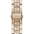 Аксессуар в цвете розового золота наделён безелемБезельВнешний ободок, закрепляющий стекло. В спортивных часах так называется поворотное кольцо с делениями на циферблате, выполняет роль таймера – замеряет отрезки времени на шкале. Неподвижный безель – элемент декора. Однонаправленно вращающийся безель на дайверских часах позволяет фиксировать моменты погружения и выныривания на поверхность. с роскошными кристаллами Swarovski. Центральная часть звеньев стального браслета с IP-покрытиемIP-покрытиеМетод ионного напыления. Демонстрирует повышенную устойчивость к истиранию, окислению и химическим веществам. Под воздействием высокого давления и температуры около 1500°C молекулы металла надёжно соединяются с частицами корпуса часов. дополнена узнаваемым логотипом бренда. За высокую точность хода отвечает японский кварцевый механизм. Минеральное стекло с закаленной поверхностью устойчиво к царапинам. Сохраняется водонепроницаемость при давлении 3 бар: часы выдержат случайные брызги воды.