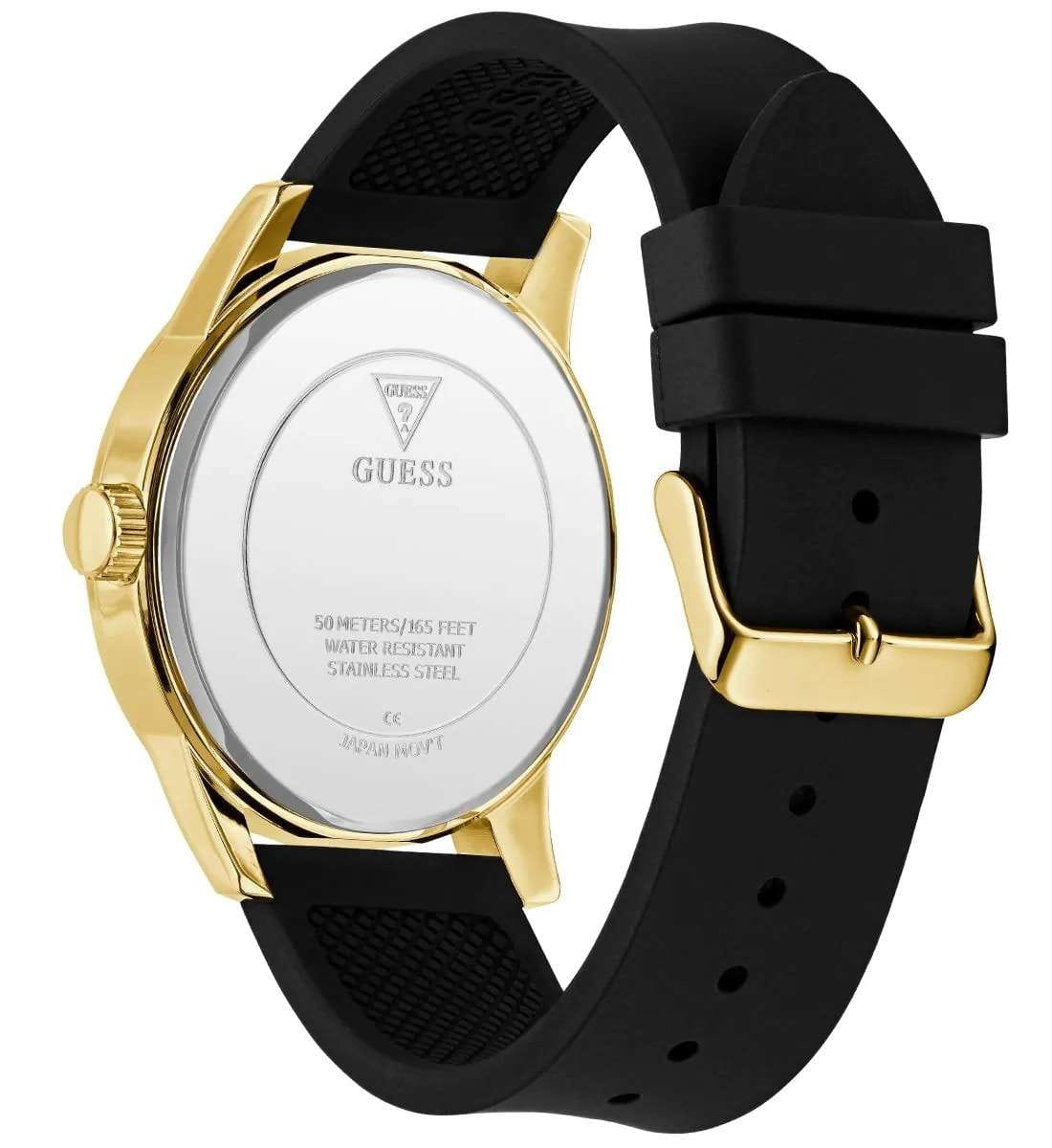 Часы Guess GW0916G1 — это изысканный аксессуар, который добавит вашему современному образу нотку гламура и элегантности. Часы оснащены надежным кварцевым механизмом, который обеспечивает точность и долговечность. Круглый стальной корпус с золотистым IP-покрытиемIP-покрытиеМетод ионного напыления. Демонстрирует повышенную устойчивость к истиранию, окислению и химическим веществам. Под воздействием высокого давления и температуры около 1500°C молекулы металла надёжно соединяются с частицами корпуса часов. и полированной поверхностью диаметром 44 мм придает часам стильный и современный вид. Золотистый циферблат, украшенный кристаллами и логотипом компании, создает утонченное и изысканное впечатление. Люминесцентное покрытиеЛюминесцентное покрытиеПозволяет считывать показания времени в темноте. Производители наносят на стрелки, часовые индексы, безель или поверхность циферблата светонакопительный состав, дающий холодное свечение. на стрелках обеспечивает отличную видимость в темноте. Часы оснащены рифленой заводной головкой для удобного управления. Силиконовый черный ремешок с классической застежкой обеспечивает надежную фиксацию часов на руке и комфорт в ношении. Водозащита 50WR позволит мыть руки или гулять под дождем, не опасаясь того, что в корпус попадет вода, а минеральное стеклоМинеральное стеклоМинеральное стекло представляет собой искусственно выращенный минерал кварца. Такое стекло отличается особой устойчивостью к повреждениям и царапинам. Уступает по некоторым качествам сапфировому стеклу. защищает циферблат от царапин. Эта модель станет идеальным аксессуаром для ежедневного использования и особых мероприятий, подчеркивая вашу индивидуальность и стиль.