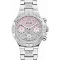 Элегантные женские наручные часы Guess Trend Harlow GW0950L1 сочетают в себе стиль и функциональность. Эти часы оснащены точным кварцевым механизмом, что гарантирует надежность и долговечность. Корпус часов выполнен из прочной нержавеющей стали диаметром 38 мм. БезельБезельВнешний ободок, закрепляющий стекло. В спортивных часах так называется поворотное кольцо с делениями на циферблате, выполняет роль таймера – замеряет отрезки времени на шкале. Неподвижный безель – элемент декора. Однонаправленно вращающийся безель на дайверских часах позволяет фиксировать моменты погружения и выныривания на поверхность. и браслет украшены кристаллами, придающими им роскошный вид. Изысканный циферблат добавляет изделию утонченности и особого шарма. Часы оснащены стальным браслетом с раскладной застежкойРаскладная застёжкаТакой тип застёжки используется только на браслетах из металла. Она никогда не раскрывается полностью, происходит разделение на 2 и более частей. Раскладывающая застёжка снизит вероятность потери часов к минимуму., который обеспечивает комфортное прилегание к запястью и надежную фиксацию. Люминесцентное покрытиеЛюминесцентное покрытиеПозволяет считывать показания времени в темноте. Производители наносят на стрелки, часовые индексы, безель или поверхность циферблата светонакопительный состав, дающий холодное свечение. на стрелках обеспечивает отличную видимость в темноте. Минеральное стеклоМинеральное стеклоМинеральное стекло представляет собой искусственно выращенный минерал кварца. Такое стекло отличается особой устойчивостью к повреждениям и царапинам. Уступает по некоторым качествам сапфировому стеклу. защищает циферблат от царапин и повреждений, сохраняя его безупречный вид. Водозащита 50WR гарантирует защиту от случайных брызг и дождя, что делает эти часы практичным аксессуаром для повседневной жизни.