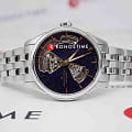 Hamilton Jazzmaster Open Heart Lady Auto H32215142 — женственные и элегантные часы с выразительным циферблатом и открытым механизмом. Корпус диаметром 36 мм выполнен из нержавеющей стали с чередованием полированной и сатинированной отделки, придающей часам изысканный и современный вид. Циферблат глубокого синего цвета с эффектом авантюрина оформлен изящными вырезами, открывающими часть механизма — так называемое "открытое сердце". Часовые метки и стрелки покрыты люминесцентным покрытиемЛюминесцентное покрытиеПозволяет считывать показания времени в темноте. Производители наносят на стрелки, часовые индексы, безель или поверхность циферблата светонакопительный состав, дающий холодное свечение., обеспечивающим отличную читаемость. Циферблат защищён сапфировым стекломСапфировое стеклоПрочный и надёжный материал из кристалла сапфира синтетического происхождения, характеризующийся особой твёрдостью и устойчивостью к царапинам и повреждениям. с антибликовым покрытиемАнтибликовое покрытиеСлой оксида металла в 0,13-0,3 микрон, благодаря которому стекло часов не бликует и не отражает свет. Антибликовое покрытие уменьшает отражение света в 10 раз, обеспечивая отличную читаемость показателей циферблата.. Внутри установлен швейцарский автоматический механизм H-10 с увеличенным запасом хода до 80 часов. Пружина баланса изготовлена из сплава Nivachron™Nivachron™Специально разработанный инновационный сплав Nivachron™ повышает устойчивость часов к воздействию магнитных полей., который отличается устойчивостью к магнитным полям. Часы укомплектованы браслетом из нержавеющей стали, а застёжка 'бабочка'Застёжка "бабочка"Такой вид застёжки дополняется предохранителями, помогающими избежать случайного раскрытия браслета. Обладают изящным исполнением. обеспечивает надёжную и аккуратную посадку на запястье. Водонепроницаемость 50 метров делает модель надёжным спутником для повседневного ношения.
