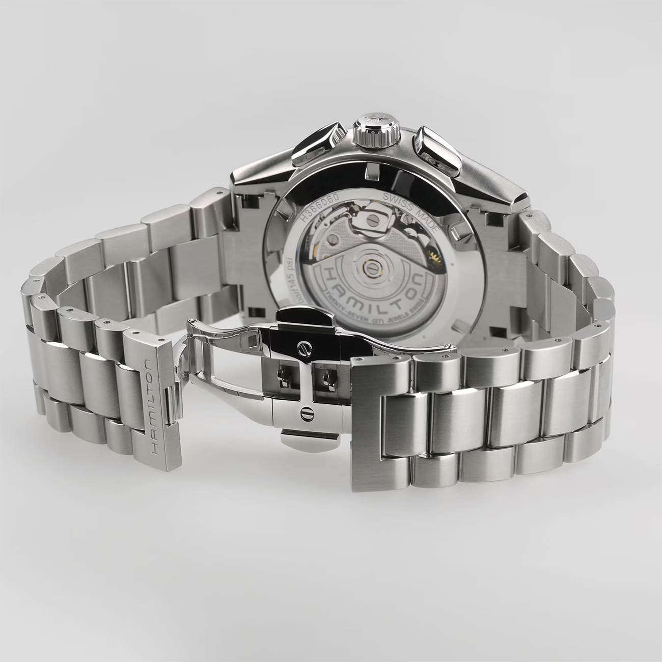 Мужские швейцарские часы Hamilton Jazzmaster Performer Auto Chrono H36606110 представляют собой элегантный хронографХронографФункция позволяет измерять отрезки времени с особой точностью: часы, минуты, секунды. Верным признаком хронографа является наличие на циферблате 3 дополнительных окошек-счётчиков. с автоматическим механизмом, идеально сочетающий классический стиль и современные технологии. Модель выполнена в круглом корпусе диаметром 42 мм из высококачественной нержавеющей стали 316L, дополненном стильным белым циферблатом, контрастным черным безелем и массивным стальным браслетом с удобной застежкой. Внутри корпуса работает надежный автоматический калибр H-31 с увеличенным запасом хода 60 часов, оснащенный функцией хронографаХронографФункция позволяет измерять отрезки времени с особой точностью: часы, минуты, секунды. Верным признаком хронографа является наличие на циферблате 3 дополнительных окошек-счётчиков., тахиметрической шкалой и удобной индикацией даты. Циферблат защищен прочным сапфировым стекломСапфировое стеклоПрочный и надёжный материал из кристалла сапфира синтетического происхождения, характеризующийся особой твёрдостью и устойчивостью к царапинам и повреждениям. с антибликовым покрытием, а люминесцентные стрелки и индексы Super-LumiNova®Люминесцентное покрытиеПозволяет считывать показания времени в темноте. Производители наносят на стрелки, часовые индексы, безель или поверхность циферблата светонакопительный состав, дающий холодное свечение. обеспечивают превосходную видимость в любых условиях освещения. Часы обладают водонепроницаемостью 10 бар (100 метров), что делает их подходящими для плавания и водных видов спорта. Особой гордостью модели является использование инновационной балансовой пружины из сплава Nivachron™Nivachron™Специально разработанный инновационный сплав Nivachron™ повышает устойчивость часов к воздействию магнитных полей., которая обеспечивает повышенную устойчивость к магнитным полям и исключительную точность хода.