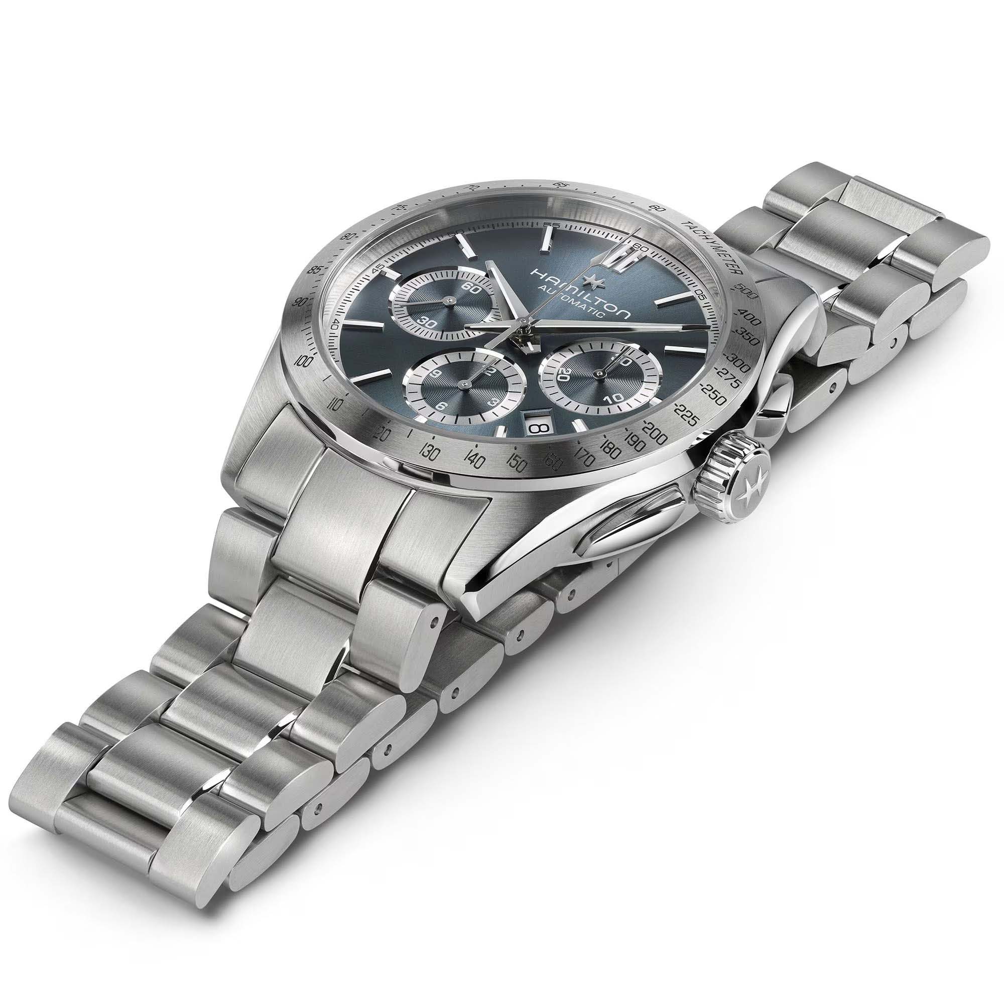 Модели из линии Jazzmaster Performer, привлекающие внимание ярким дизайном в стиле спортивный шик, сочетают в себе функциональность и эстетичность. Часы Jazzmaster Performer Automatic Chronograph оснащены автоматическим механизмом хронографаХронографФункция позволяет измерять отрезки времени с особой точностью: часы, минуты, секунды. Верным признаком хронографа является наличие на циферблате 3 дополнительных окошек-счётчиков. H-31 с 60-часовым запасом хода. Элегантный циферблат голубого цвета превосходно смотрится в сочетании с эффектным браслетом из нержавеющей стали.