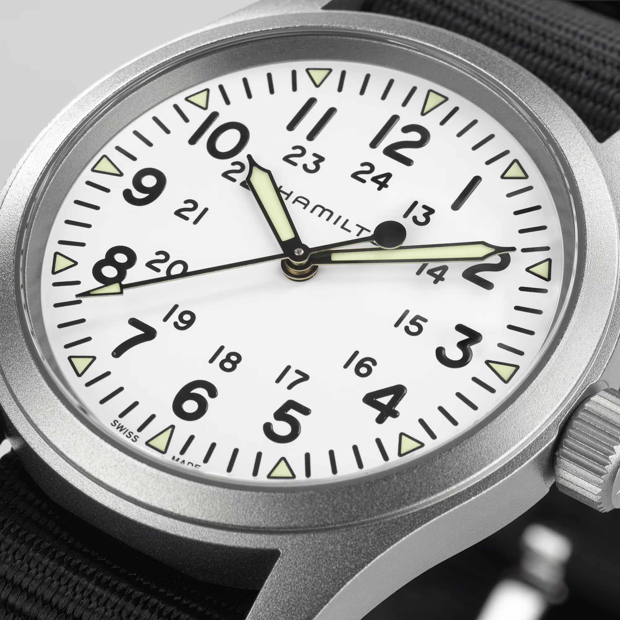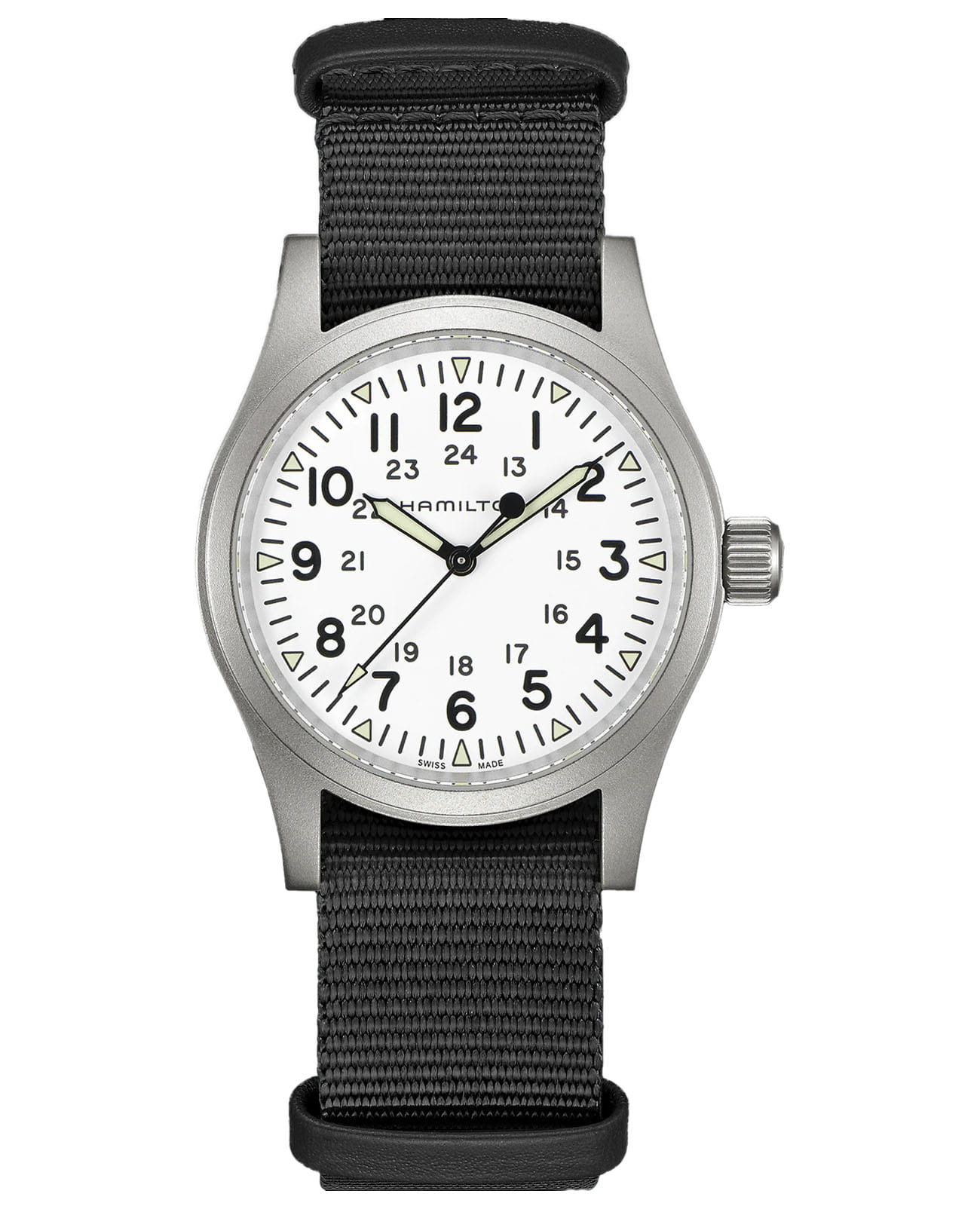 Мужские механические швейцарские часы Hamilton Khaki Field Mechanical H69439910, механический механизм (автоматический калибр) с высокой точностью. Сапфировое стеклоСапфировое стеклоПрочный и надёжный материал из кристалла сапфира синтетического происхождения, характеризующийся особой твёрдостью и устойчивостью к царапинам и повреждениям. устойчивое к появлению царапин, обладающее высокой прозрачностью. Класс водозащиты: 50 метров, позволит защитить корпус от случайных брызг или капель дождя. Корпус часов изготовлен из нержавеющей стали. Текстильный ремешок NATOРемешок NATOРемешок NATO — это прочный, универсальный и сменный часовой ремешок, изначально созданный для военных. Он изготовлен из нейлона или другого прочного материала и имеет уникальную конструкцию, которая позволяет часам оставаться на запястье даже в случае поломки одной из прикрепляющих точек. .