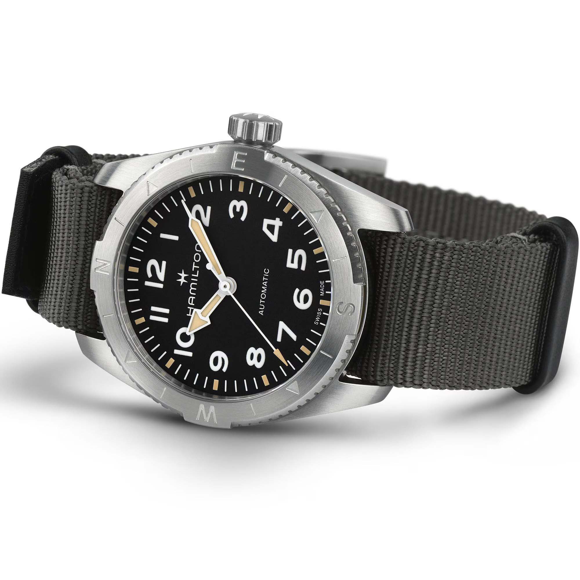 Женские механические швейцарские часы Hamilton Khaki Field Expedition Auto H70225930, механический механизм (автоматический калибр) с высокой точностью. Сапфировое стеклоСапфировое стеклоПрочный и надёжный материал из кристалла сапфира синтетического происхождения, характеризующийся особой твёрдостью и устойчивостью к царапинам и повреждениям. устойчивое к появлению царапин, обладающее высокой прозрачностью. Класс водозащиты: 100 метров, позволит плавать, нырять и заниматься другими водными видами спорта. Корпус часов изготовлен из нержавеющей стали. Текстильный ремешок NATOРемешок NATOРемешок NATO — это прочный, универсальный и сменный часовой ремешок, изначально созданный для военных. Он изготовлен из нейлона или другого прочного материала и имеет уникальную конструкцию, которая позволяет часам оставаться на запястье даже в случае поломки одной из прикрепляющих точек. .