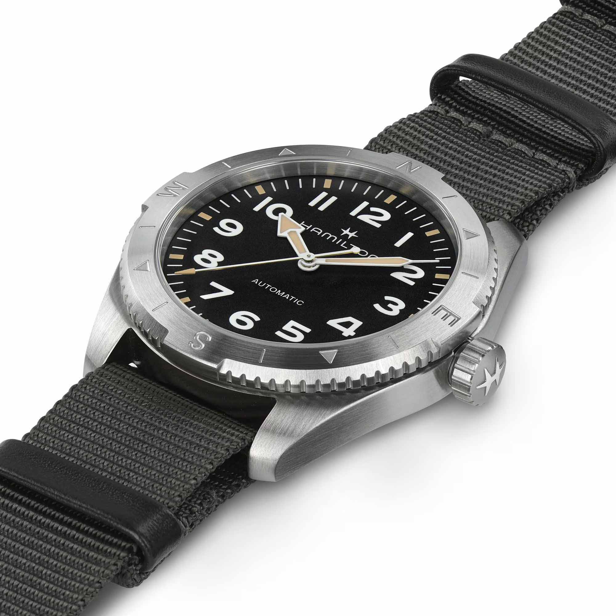 Мужские наручные часы Hamilton Khaki Field Expedition Auto H70315930 с автоматическим механизмом. Корпус часов изготовлен из нержавеющей стали. Сапфировое стеклоСапфировое стеклоПрочный и надёжный материал из кристалла сапфира синтетического происхождения, характеризующийся особой твёрдостью и устойчивостью к царапинам и повреждениям. с антибликовым покрытием. Стрелки и метки с люминесцентным покрытиемЛюминесцентное покрытиеПозволяет считывать показания времени в темноте. Производители наносят на стрелки, часовые индексы, безель или поверхность циферблата светонакопительный состав, дающий холодное свечение.. Уровень влагозащиты: 100 метров, позволит плавать, нырять и заниматься другими водными видами спорта. Невероятно прочные часы дополнены завинчивающейся заводной головкой и черным циферблатом с пескоструйной обработкой. Текстильный ремешок NATOРемешок NATOРемешок NATO — это прочный, универсальный и сменный часовой ремешок, изначально созданный для военных. Он изготовлен из нейлона или другого прочного материала и имеет уникальную конструкцию, которая позволяет часам оставаться на запястье даже в случае поломки одной из прикрепляющих точек. .