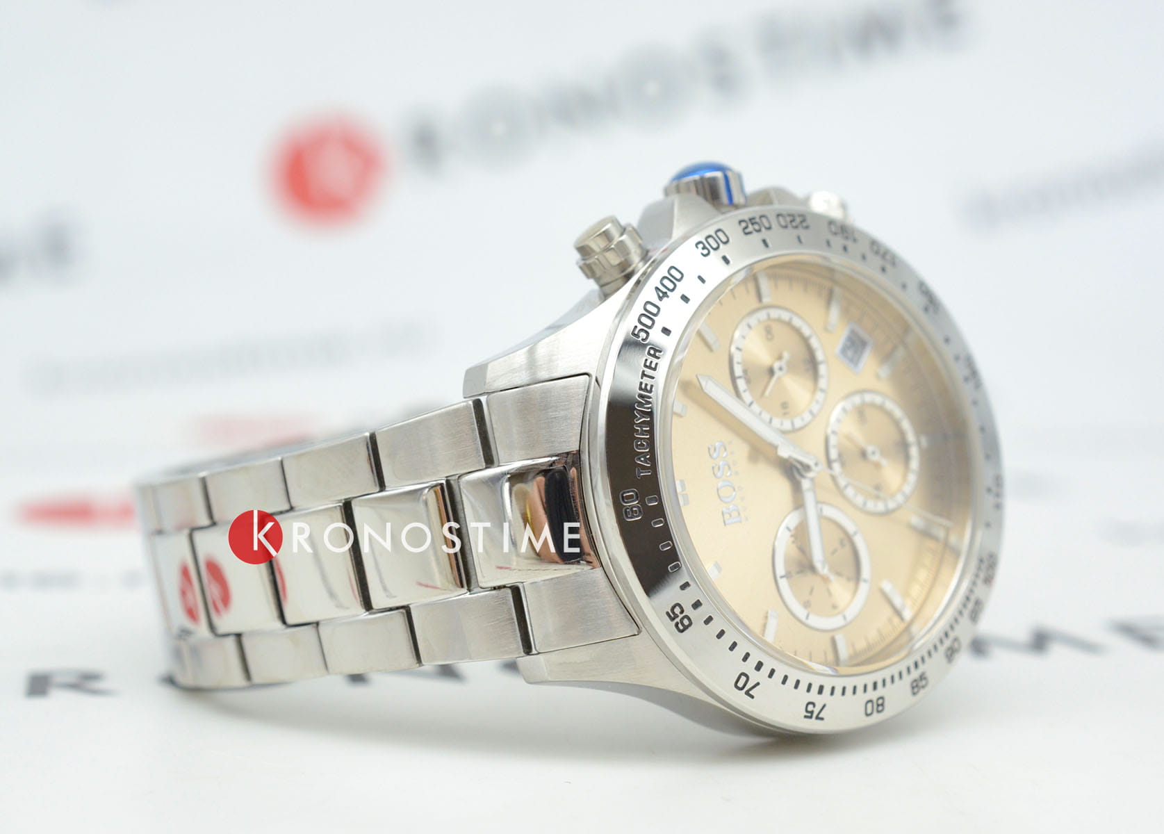 Элегантные женские часы Hugo Boss HB1502615 из коллекции Novia Sport Lux представлены в стальном корпусе диаметром 38 мм с эффектным розовым цифербалтом в технике Sunray, защищённым прочным минеральным стекломМинеральное стеклоМинеральное стекло представляет собой искусственно выращенный минерал кварца. Такое стекло отличается особой устойчивостью к повреждениям и царапинам. Уступает по некоторым качествам сапфировому стеклу.. Модель оснащена швейцарским кварцевым механизмом с полезными функциями: индикацией даты между 4 и 5 часами, вторым часовым поясомВторой часовой поясФункция, позволяющая отображать время двух часовых поясов одновременно. в 24-часовом формате и тахиметрической шкалойТахиметрРазмеченная шкала, располагается на ободке или безеле часов. Тахиметр позволяет рассчитать скорость на определённом участке пути, расстояние измеряется в километрах или милях.. Спортивный характер подчёркивает рифлёная заводная головка с защитой, а стальной браслет с раскладывающейся застёжкой обеспечивает комфортную посадку. Ударопрочная конструкцияУдаропрочный корпусМеханизм заключён в корпус, выполненный из современных материалов, устойчивых к ударам, механическим повреждениям и падению с высоты: инновационный пластик, карбон, нержавеющая сталь, титан. с водонепроницаемостью 50 метров делает часы устойчивыми к повседневным нагрузкам.