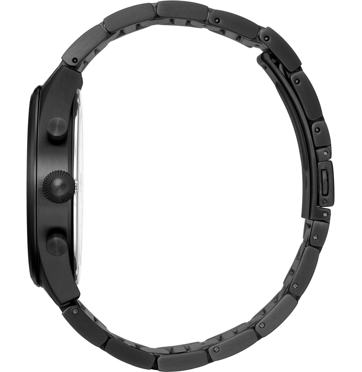 Мужские кварцевые часы Hugo Boss Commissioner HB1513714 представляют собой стильный хронографХронографФункция позволяет измерять отрезки времени с особой точностью: часы, минуты, секунды. Верным признаком хронографа является наличие на циферблате 3 дополнительных окошек-счётчиков. с круглым корпусом диаметром 44 мм из нержавеющей стали с IP-покрытиемIP-покрытиеМетод ионного напыления. Демонстрирует повышенную устойчивость к истиранию, окислению и химическим веществам. Под воздействием высокого давления и температуры около 1500°C молекулы металла надёжно соединяются с частицами корпуса часов. черного цвета. Модель оснащена высокоточным кварцевым механизмом с функцией хронографаХронографФункция позволяет измерять отрезки времени с особой точностью: часы, минуты, секунды. Верным признаком хронографа является наличие на циферблате 3 дополнительных окошек-счётчиков., включая 60-минутный счетчик и 24-часовой индикатор, а также тахиметрической шкалойТахиметрРазмеченная шкала, располагается на ободке или безеле часов. Тахиметр позволяет рассчитать скорость на определённом участке пути, расстояние измеряется в километрах или милях. для расчетов скорости. Черный циферблат с серебристыми стрелками и индексами обеспечивает оптимальную читаемость, защищен устойчивым к царапинам минеральным стекломМинеральное стеклоМинеральное стекло представляет собой искусственно выращенный минерал кварца. Такое стекло отличается особой устойчивостью к повреждениям и царапинам. Уступает по некоторым качествам сапфировому стеклу.. Водонепроницаемость 5 ATM (50 метров) защищает от брызг и дождя. Стальной браслет с IP-покрытиемIP-покрытиеМетод ионного напыления. Демонстрирует повышенную устойчивость к истиранию, окислению и химическим веществам. Под воздействием высокого давления и температуры около 1500°C молекулы металла надёжно соединяются с частицами корпуса часов. и раскладной застежкойРаскладная застёжкаТакой тип застёжки используется только на браслетах из металла. Она никогда не раскрывается полностью, происходит разделение на 2 и более частей. Раскладывающая застёжка снизит вероятность потери часов к минимуму. с фиксатором обеспечивает надежную посадку на запястье.