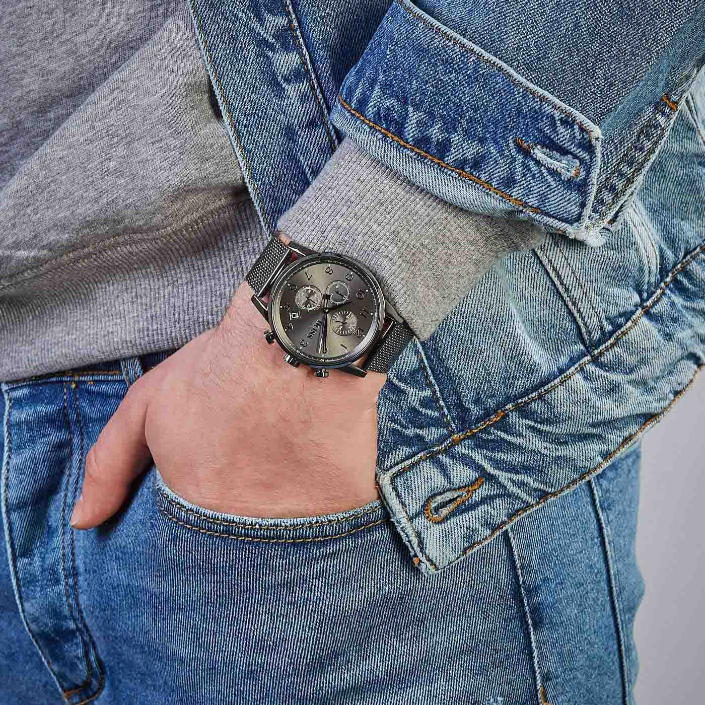 Мужские кварцевые часы Hugo Boss HB1513674 — это стильный аксессуар, сочетающий в себе элегантность и функциональность. Модель выполнена в круглой форме из стали с IP-покрытиемIP-покрытиеМетод ионного напыления. Демонстрирует повышенную устойчивость к истиранию, окислению и химическим веществам. Под воздействием высокого давления и температуры около 1500°C молекулы металла надёжно соединяются с частицами корпуса часов., что придаёт ей устойчивость к царапинам и благородный внешний вид. Циферблат чёрного цвета дополнен арабскими цифрами и окошком даты, расположенным между отметками 4 и 5 часов. Защиту механизма обеспечивает минеральное стеклоМинеральное стеклоМинеральное стекло представляет собой искусственно выращенный минерал кварца. Такое стекло отличается особой устойчивостью к повреждениям и царапинам. Уступает по некоторым качествам сапфировому стеклу., устойчивое к повреждениям. Рифлёная заводная головка обеспечивает удобство в использовании. Стальной браслет миланского плетения с покрытием шириной 22 мм оснащён Раскладная застёжкаРаскладная застёжкаТакой тип застёжки используется только на браслетах из металла. Она никогда не раскрывается полностью, происходит разделение на 2 и более частей. Раскладывающая застёжка снизит вероятность потери часов к минимуму., обеспечивающей комфорт и надёжную фиксацию на запястье. Часы водонепроницаемы до 50 метров (, что позволяет использовать их при мытье рук или под лёгким дождём. Время отображается в 12- и 24-часовом формате, что делает модель универсальной для использования в разных условиях. Эти часы станут универсальным аксессуаром для тех, кто ценит сочетание стиля, качества и надёжности — идеальный выбор для повседневной носки и деловых встреч.