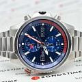 Мужские часы Hugo Boss Globetrotter HB1513823 представлены в 46-мм корпусе из нержавеющей стали 316L с синим циферблатом. Оснащены кварцевым механизмом с функцией хронографаХронографФункция позволяет измерять отрезки времени с особой точностью: часы, минуты, секунды. Верным признаком хронографа является наличие на циферблате 3 дополнительных окошек-счётчиков. и тахиметромТахиметрРазмеченная шкала, располагается на ободке или безеле часов. Тахиметр позволяет рассчитать скорость на определённом участке пути, расстояние измеряется в километрах или милях. на внутреннем безелеБезельВнешний ободок, закрепляющий стекло. В спортивных часах так называется поворотное кольцо с делениями на циферблате, выполняет роль таймера – замеряет отрезки времени на шкале. Неподвижный безель – элемент декора. Однонаправленно вращающийся безель на дайверских часах позволяет фиксировать моменты погружения и выныривания на поверхность.. Циферблат защищен устойчивым к царапинам минеральным стекломМинеральное стеклоМинеральное стекло представляет собой искусственно выращенный минерал кварца. Такое стекло отличается особой устойчивостью к повреждениям и царапинам. Уступает по некоторым качествам сапфировому стеклу.. Стальной браслет дополнен раскладной застёжкойРаскладная застёжкаТакой тип застёжки используется только на браслетах из металла. Она никогда не раскрывается полностью, происходит разделение на 2 и более частей. Раскладывающая застёжка снизит вероятность потери часов к минимуму.. Водонепроницаемость 100 метров (10 ATM) позволяет использовать часы для плавания. Дополнительные функции включают окошко даты и 24-часовой индикатор.