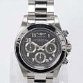 Часы оснащены функцией хронографаХронографФункция позволяет измерять отрезки времени с особой точностью: часы, минуты, секунды. Верным признаком хронографа является наличие на циферблате 3 дополнительных окошек-счётчиков. и тахиметрТахиметрРазмеченная шкала, располагается на ободке или безеле часов. Тахиметр позволяет рассчитать скорость на определённом участке пути, расстояние измеряется в километрах или милях., что позволяет точно измерять скорость и время различных событий. Циферблат защищен прочным минеральным стекломМинеральное стеклоМинеральное стекло представляет собой искусственно выращенный минерал кварца. Такое стекло отличается особой устойчивостью к повреждениям и царапинам. Уступает по некоторым качествам сапфировому стеклу., обеспечивающим высокую устойчивость к царапинам. Завинчивающаяся рифленая заводная головка с защитой гарантирует надежную герметизацию механизма, а завинчивающаяся задняя крышка добавляет дополнительную защиту от внешних воздействий.