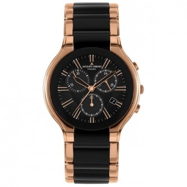 Стильные наручные часы Jacques Lemans идеально дополнят ваш образ. Механизм: Кварцевые; Корпус: сталь с розовым IP покрытием; Браслет: стальной с розовым IP покрытием и керамическими вставками; Стекло: Сапфировое; Водозащита: 50 м. (WR 50).