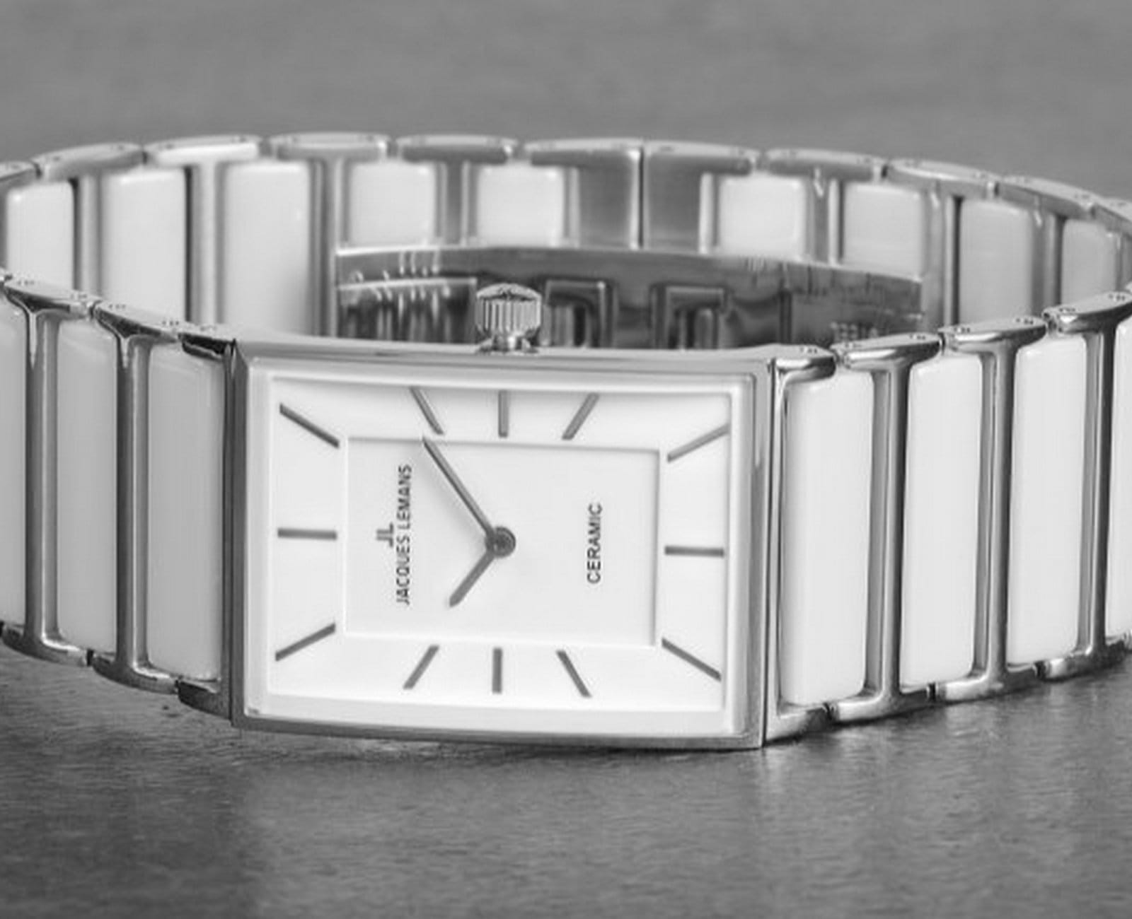 Часы Jacques Lemans York 1-1594E из коллекции High Tech Ceramic сочетают элегантный дизайн и передовые материалы. Корпус размером 24x33 мм выполнен из нержавеющей стали с вставками из высокотехнологичной керамики Высокотехнологичная керамикаВысокотехнологичная керамикаИнновационный запатентованный Rado материал с гладкой или матовой поверхностью. Керамика за счёт кристаллической структуры обладает повышенной устойчивостью от возникновения царапин. Материал способен принимать температуру тела человека, обеспечивая невероятный комфорт при ношении., обеспечивающей высокую прочность и устойчивость к царапинам. Циферблат белого цвета защищён минеральным стеклом Минеральное стеклоМинеральное стеклоМинеральное стекло представляет собой искусственно выращенный минерал кварца. Такое стекло отличается особой устойчивостью к повреждениям и царапинам. Уступает по некоторым качествам сапфировому стеклу. с сапфировым покрытием, что повышает его стойкость к повреждениям. Часы оснащены надёжным кварцевым механизмом, обеспечивающим точность хода. Водозащита 5 ATM позволяет использовать их в повседневной жизни, включая случайные контакты с водой. Браслет из нержавеющей стали с керамическими вставками и застёжкой "бабочка" Застёжка 'бабочка'Застёжка "бабочка"Такой вид застёжки дополняется предохранителями, помогающими избежать случайного раскрытия браслета. Обладают изящным исполнением. обеспечивает комфортное ношение и надёжную фиксацию на запястье. Эти часы идеально подойдут для тех, кто ценит сочетание стиля и функциональности.