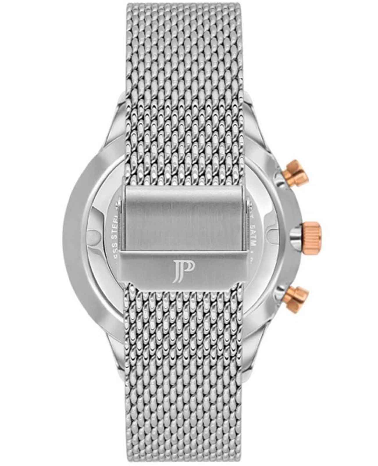 Часы Jacques Philippe Apollo JPQGC031236N — это гармоничное сочетание элегантного дизайна, современных швейцарских технологий и безупречного качества исполнения. Кварцевый механизм Ronda 5040.D.0001 обеспечивает точность хода. Модель оснащена точным кварцевым механизмом с функцией хронографаХронографФункция позволяет измерять отрезки времени с особой точностью: часы, минуты, секунды. Верным признаком хронографа является наличие на циферблате 3 дополнительных окошек-счётчиков. с секундомеромСекундомерСекундоме́р — прибор, способный измерять интервалы времени с точностью до долей секунды., что позволяет не только отслеживать время, но и использовать дополнительные возможности для активного образа жизни. Корпус диаметром 43 мм выполнен из прочной нержавеющей стали 316L, а сапфировое стеклоСапфировое стеклоПрочный и надёжный материал из кристалла сапфира синтетического происхождения, характеризующийся особой твёрдостью и устойчивостью к царапинам и повреждениям. надежно защищает синий циферблат от царапин и других повреждений. Окошко даты расположено между отметками 4 и 5 часов, что добавляет удобства в повседневном использовании. Для удобства использования в темное время суток предусмотрено люминесцентное покрытиеЛюминесцентное покрытиеПозволяет считывать показания времени в темноте. Производители наносят на стрелки, часовые индексы, безель или поверхность циферблата светонакопительный состав, дающий холодное свечение. стрелок. Браслет из нержавеющей стали с миланским плетением подчеркивает современный стиль изделия, а раскладной замокРаскладной замокДанный вариант застежки используется только на часах с металлическим браслетом. Отличительная особенность такого крепления в том, что длина браслета становится универсальной и вы можете самостоятельно отрегулировать нужный вам размер – застежка просто двигается по браслету часов. обеспечивает комфортное ношение и надежную фиксацию на запястье. Водозащита до 5 атмосфер позволяет не беспокоиться о случайных брызгах и дождевых каплях.