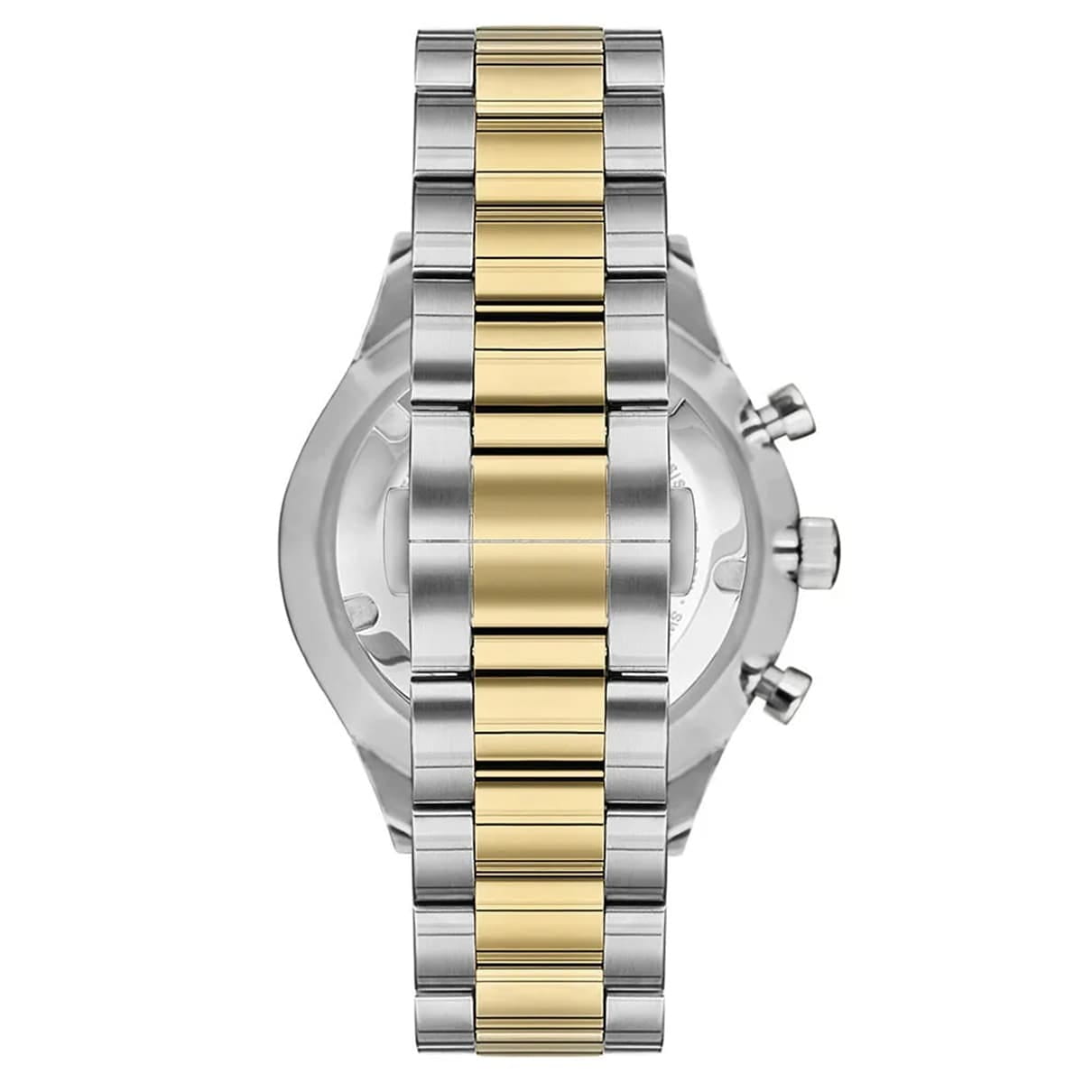 Часы Jacques Philippe Apollo JPQGC0313X8N — это гармоничное сочетание элегантного дизайна, современных швейцарских технологий и безупречного качества исполнения. Кварцевый механизм Ronda 5040.D.0001 обеспечивает точность хода. Модель оснащена точным кварцевым механизмом с функцией хронографаХронографФункция позволяет измерять отрезки времени с особой точностью: часы, минуты, секунды. Верным признаком хронографа является наличие на циферблате 3 дополнительных окошек-счётчиков. с секундомеромСекундомерСекундоме́р — прибор, способный измерять интервалы времени с точностью до долей секунды., что позволяет не только отслеживать время, но и использовать дополнительные возможности для активного образа жизни. Корпус диаметром 43 мм выполнен из прочной нержавеющей стали 316L, а сапфировое стеклоСапфировое стеклоПрочный и надёжный материал из кристалла сапфира синтетического происхождения, характеризующийся особой твёрдостью и устойчивостью к царапинам и повреждениям. надежно защищает зеленый циферблат от царапин и других повреждений. Окошко даты расположено между отметками 4 и 5 часов, что добавляет удобства в повседневном использовании. Для удобства использования в темное время суток предусмотрено люминесцентное покрытиеЛюминесцентное покрытиеПозволяет считывать показания времени в темноте. Производители наносят на стрелки, часовые индексы, безель или поверхность циферблата светонакопительный состав, дающий холодное свечение. стрелок. Браслет из нержавеющей стали с частичным золотистым PVD-покрытиемPVDУльтратонкое покрытие наносится в технике вакуумного напыления, сочетает в себе нитрид титана особой прочности со слоем золота или оксида хрома. Несёт в себе декоративную или защитную функцию. подчеркивает современный стиль изделия, а застежка «бабочка»Застёжка "бабочка"Такой вид застёжки дополняется предохранителями, помогающими избежать случайного раскрытия браслета. Обладают изящным исполнением. , раскладывающаяся при нажатии кнопок двойной блокировки, обеспечивает комфортное ношение и надежную фиксацию на запястье. Водозащита до 5 атмосфер позволяет не беспокоиться о случайных брызгах и дождевых каплях.
