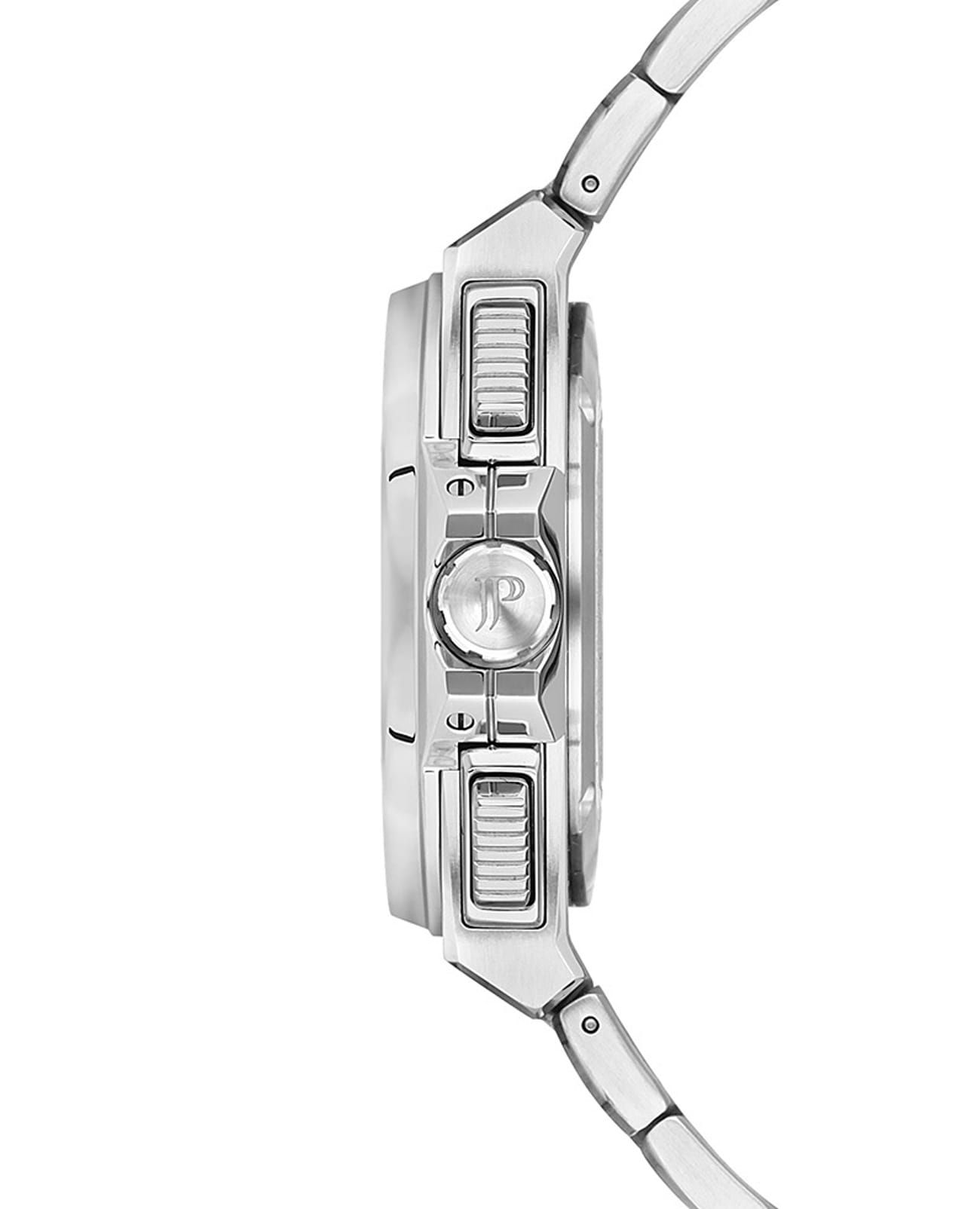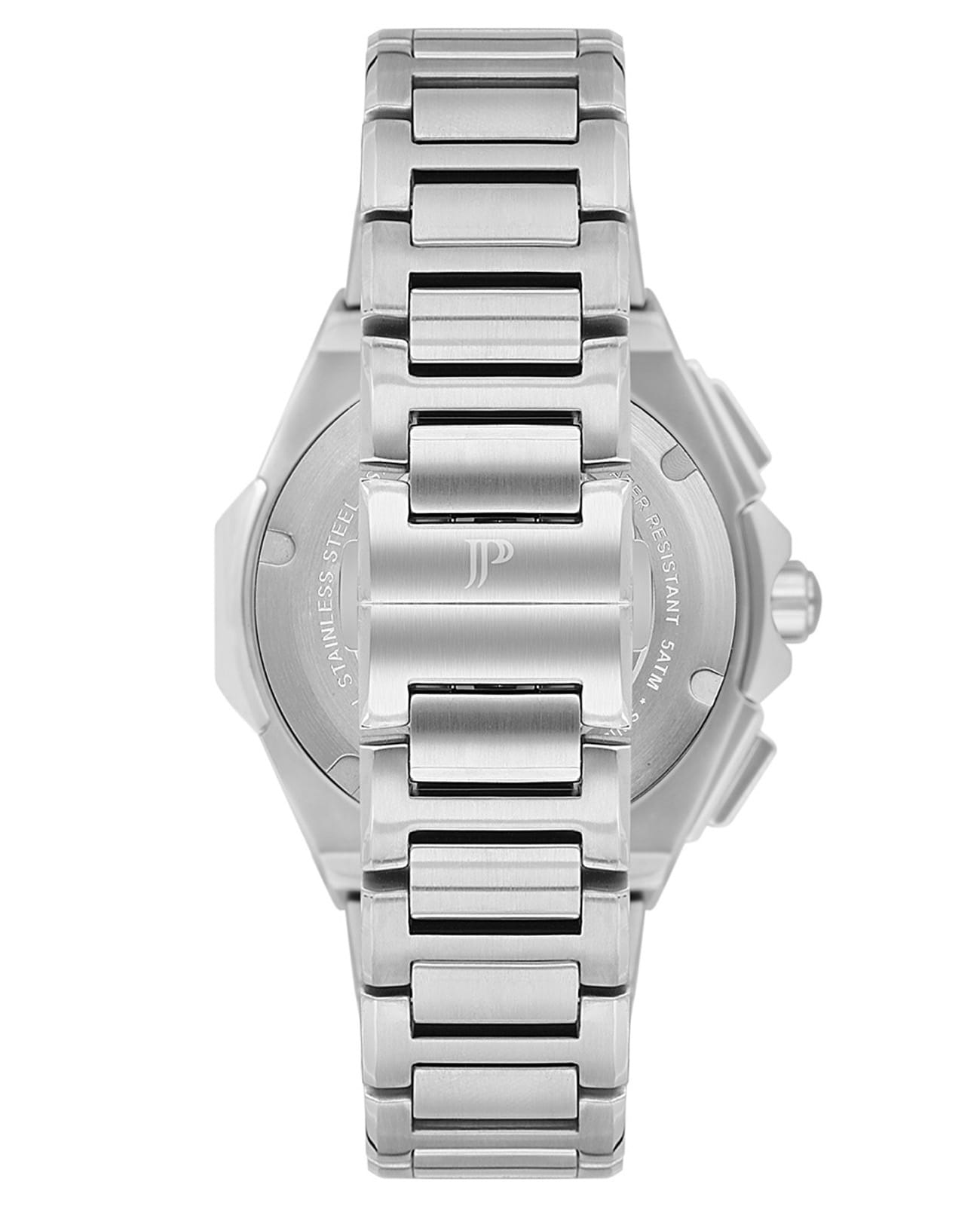 Швейцарские мужские часы-хронографХронографФункция позволяет измерять отрезки времени с особой точностью: часы, минуты, секунды. Верным признаком хронографа является наличие на циферблате 3 дополнительных окошек-счётчиков. с секундомеромСекундомерСекундоме́р — прибор, способный измерять интервалы времени с точностью до долей секунды. Jacques Philippe Esquire JPQGC0413X6S, кварцевый механизм с высокой точностью. Сапфировое стеклоСапфировое стеклоПрочный и надёжный материал из кристалла сапфира синтетического происхождения, характеризующийся особой твёрдостью и устойчивостью к царапинам и повреждениям. устойчивое к появлению царапин, обладающее высокой прозрачностью. Корпус часов изготовлен из нержавеющей стали. На циферблате три дополнительных индикатора. Стрелки с люминесцентным покрытиемЛюминесцентное покрытиеПозволяет считывать показания времени в темноте. Производители наносят на стрелки, часовые индексы, безель или поверхность циферблата светонакопительный состав, дающий холодное свечение.. Шкала тахиметраТахиметрРазмеченная шкала, располагается на ободке или безеле часов. Тахиметр позволяет рассчитать скорость на определённом участке пути, расстояние измеряется в километрах или милях. на циферблате. Класс водозащиты: 50 метров, позволит защитить корпус от случайных брызг или капель дождя. Стальной браслет на застёжке «бабочка» с кнопкамиЗастёжка "бабочка"Такой вид застёжки дополняется предохранителями, помогающими избежать случайного раскрытия браслета. Обладают изящным исполнением. .