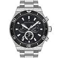 Швейцарские мужские часы-хронографХронографФункция позволяет измерять отрезки времени с особой точностью: часы, минуты, секунды. Верным признаком хронографа является наличие на циферблате 3 дополнительных окошек-счётчиков. с секундомеромСекундомерСекундоме́р — прибор, способный измерять интервалы времени с точностью до долей секунды. Jacques Philippe Cavalier JPQGC201316, кварцевый механизм с высокой точностью. Сапфировое стеклоСапфировое стеклоПрочный и надёжный материал из кристалла сапфира синтетического происхождения, характеризующийся особой твёрдостью и устойчивостью к царапинам и повреждениям. устойчивое к появлению царапин, обладающее высокой прозрачностью. Корпус часов изготовлен из нержавеющей стали. БезельБезельВнешний ободок, закрепляющий стекло. В спортивных часах так называется поворотное кольцо с делениями на циферблате, выполняет роль таймера – замеряет отрезки времени на шкале. Неподвижный безель – элемент декора. Однонаправленно вращающийся безель на дайверских часах позволяет фиксировать моменты погружения и выныривания на поверхность. из стали с IP-покрытиемIP-покрытиеМетод ионного напыления. Демонстрирует повышенную устойчивость к истиранию, окислению и химическим веществам. Под воздействием высокого давления и температуры около 1500°C молекулы металла надёжно соединяются с частицами корпуса часов.. На циферблате три дополнительных индикатора. Окошко даты находится в положении 6 часов. Стрелки с люминесцентным покрытиемЛюминесцентное покрытиеПозволяет считывать показания времени в темноте. Производители наносят на стрелки, часовые индексы, безель или поверхность циферблата светонакопительный состав, дающий холодное свечение.. Класс водозащиты: 50 метров, позволит защитить корпус от случайных брызг или капель дождя. Стальной браслет на застёжке «бабочка» с кнопкамиЗастёжка "бабочка"Такой вид застёжки дополняется предохранителями, помогающими избежать случайного раскрытия браслета. Обладают изящным исполнением. .