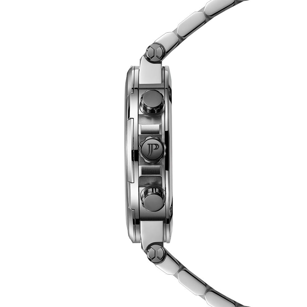 Jacques Philippe Corus JPQGC441336 — стильные швейцарские часы с функцией хронографаХронографФункция позволяет измерять отрезки времени с особой точностью: часы, минуты, секунды. Верным признаком хронографа является наличие на циферблате 3 дополнительных окошек-счётчиков. и секундомераСекундомерСекундоме́р — прибор, способный измерять интервалы времени с точностью до долей секунды., которые сочетают в себе элегантность и современный функционал. Модель оснащена точным кварцевым механизмом и надежным корпусом из нержавеющей стали 316L, что гарантирует долговечность и устойчивость к механическим воздействиям. Сапфировое стеклоСапфировое стеклоПрочный и надёжный материал из кристалла сапфира синтетического происхождения, характеризующийся особой твёрдостью и устойчивостью к царапинам и повреждениям. отличается высокой прозрачностью и устойчивостью к царапинам, сохраняя безупречный внешний вид часов даже при активном использовании. Серебристый циферблат украшен тремя дополнительными индикаторами и удобным окошком даты в положении «4 часа», а стрелки с люминесцентным покрытиемЛюминесцентное покрытиеПозволяет считывать показания времени в темноте. Производители наносят на стрелки, часовые индексы, безель или поверхность циферблата светонакопительный состав, дающий холодное свечение. обеспечивают отличную читаемость в любое время суток. Браслет из нержавеющей стали 316 оснащен удобной застежкой «бабочка»Застёжка "бабочка"Такой вид застёжки дополняется предохранителями, помогающими избежать случайного раскрытия браслета. Обладают изящным исполнением. , что обеспечивает комфорт и надежность при носке. Класс водозащиты 10 ATM (100 метров) позволяет не снимать часы во время мытья рук или прогулок под дождем.