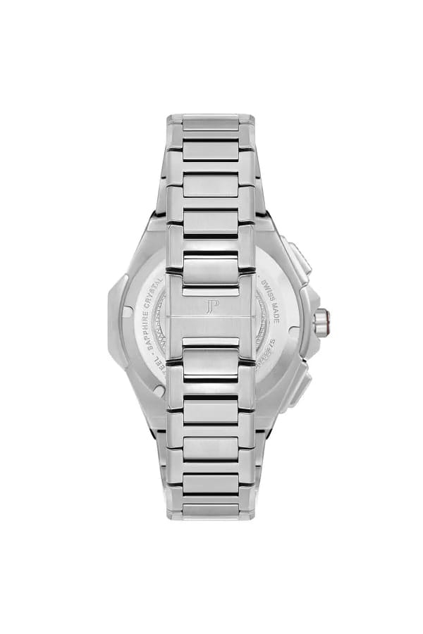 Швейцарские мужские часы-хронографХронографФункция позволяет измерять отрезки времени с особой точностью: часы, минуты, секунды. Верным признаком хронографа является наличие на циферблате 3 дополнительных окошек-счётчиков. с секундомеромСекундомерСекундоме́р — прибор, способный измерять интервалы времени с точностью до долей секунды. Jacques Philippe Esquire JPQGC481316, кварцевый механизм с высокой точностью. Сапфировое стеклоСапфировое стеклоПрочный и надёжный материал из кристалла сапфира синтетического происхождения, характеризующийся особой твёрдостью и устойчивостью к царапинам и повреждениям. устойчивое к появлению царапин, обладающее высокой прозрачностью. Корпус часов изготовлен из нержавеющей стали 316L. На циферблате три дополнительных индикатора. Стрелки и метки с люминесцентным покрытиемЛюминесцентное покрытиеПозволяет считывать показания времени в темноте. Производители наносят на стрелки, часовые индексы, безель или поверхность циферблата светонакопительный состав, дающий холодное свечение.. Шкала тахиметраТахиметрРазмеченная шкала, располагается на ободке или безеле часов. Тахиметр позволяет рассчитать скорость на определённом участке пути, расстояние измеряется в километрах или милях. на циферблате. Класс водозащиты: 50 метров, позволит защитить корпус от случайных брызг или капель дождя. Стальной браслет на застёжке «бабочка»Застёжка "бабочка"Такой вид застёжки дополняется предохранителями, помогающими избежать случайного раскрытия браслета. Обладают изящным исполнением. .