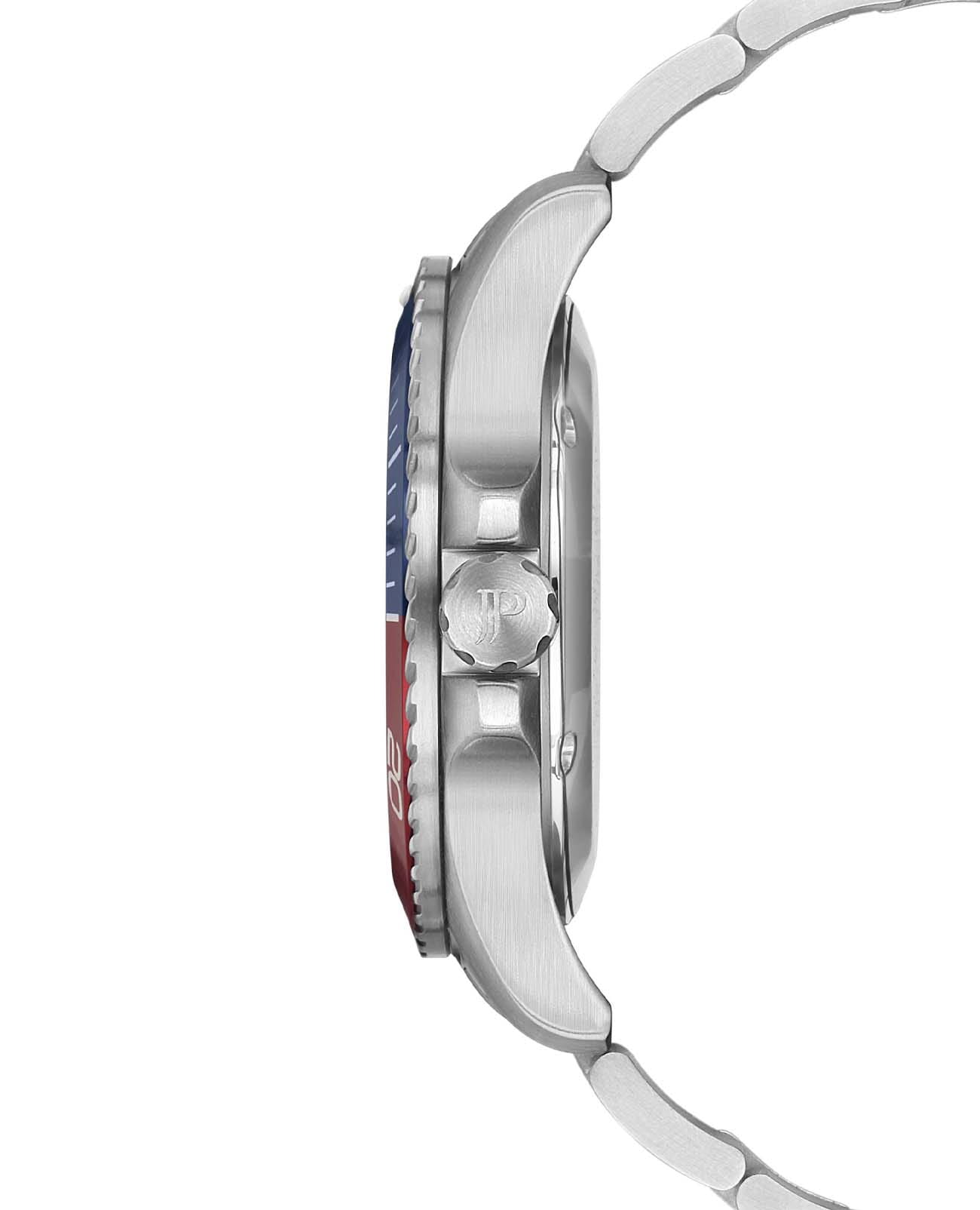 Швейцарские мужские часы Jacques Philippe Athletic JPQGS141336, кварцевый механизм с высокой точностью. Сапфировое стеклоСапфировое стеклоПрочный и надёжный материал из кристалла сапфира синтетического происхождения, характеризующийся особой твёрдостью и устойчивостью к царапинам и повреждениям. устойчивое к появлению царапин, обладающее высокой прозрачностью. Корпус часов изготовлен из нержавеющей стали. Класс водозащиты: 100 метров, позволит плавать, нырять и заниматься другими водными видами спорта. Стальной браслет на застёжке-бабочке с кнопкамиЗастёжка "бабочка"Такой вид застёжки дополняется предохранителями, помогающими избежать случайного раскрытия браслета. Обладают изящным исполнением. . Окошко даты находится в положении 3 часа. Вращающийся безельБезельВнешний ободок, закрепляющий стекло. В спортивных часах так называется поворотное кольцо с делениями на циферблате, выполняет роль таймера – замеряет отрезки времени на шкале. Неподвижный безель – элемент декора. Однонаправленно вращающийся безель на дайверских часах позволяет фиксировать моменты погружения и выныривания на поверхность. с IP-покрытиемIP-покрытиеМетод ионного напыления. Демонстрирует повышенную устойчивость к истиранию, окислению и химическим веществам. Под воздействием высокого давления и температуры около 1500°C молекулы металла надёжно соединяются с частицами корпуса часов.. Стрелки и метки с люминесцентным покрытиемЛюминесцентное покрытиеПозволяет считывать показания времени в темноте. Производители наносят на стрелки, часовые индексы, безель или поверхность циферблата светонакопительный состав, дающий холодное свечение..