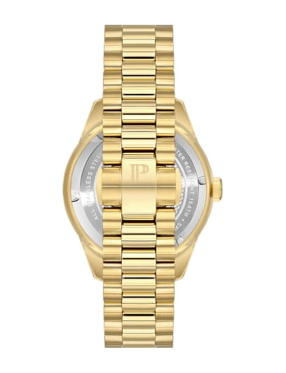 Швейцарские мужские часы Jacques Philippe Solis JPQGS232314, кварцевый механизм с высокой точностью. Сапфировое стеклоСапфировое стеклоПрочный и надёжный материал из кристалла сапфира синтетического происхождения, характеризующийся особой твёрдостью и устойчивостью к царапинам и повреждениям. устойчивое к появлению царапин, обладающее высокой прозрачностью. Корпус часов изготовлен из нержавеющей стали с PVD-покрытиемPVDУльтратонкое покрытие наносится в технике вакуумного напыления, сочетает в себе нитрид титана особой прочности со слоем золота или оксида хрома. Несёт в себе декоративную или защитную функцию.. Класс водозащиты: 100 метров, позволит плавать, нырять и заниматься другими водными видами спорта. Стальной браслет с PVD-покрытиемPVDУльтратонкое покрытие наносится в технике вакуумного напыления, сочетает в себе нитрид титана особой прочности со слоем золота или оксида хрома. Несёт в себе декоративную или защитную функцию. на застёжке-бабочке с кнопкамиЗастёжка "бабочка"Такой вид застёжки дополняется предохранителями, помогающими избежать случайного раскрытия браслета. Обладают изящным исполнением. . Окошко даты находится в положении 3 часа. Стрелки и метки с люминесцентным покрытиемЛюминесцентное покрытиеПозволяет считывать показания времени в темноте. Производители наносят на стрелки, часовые индексы, безель или поверхность циферблата светонакопительный состав, дающий холодное свечение..