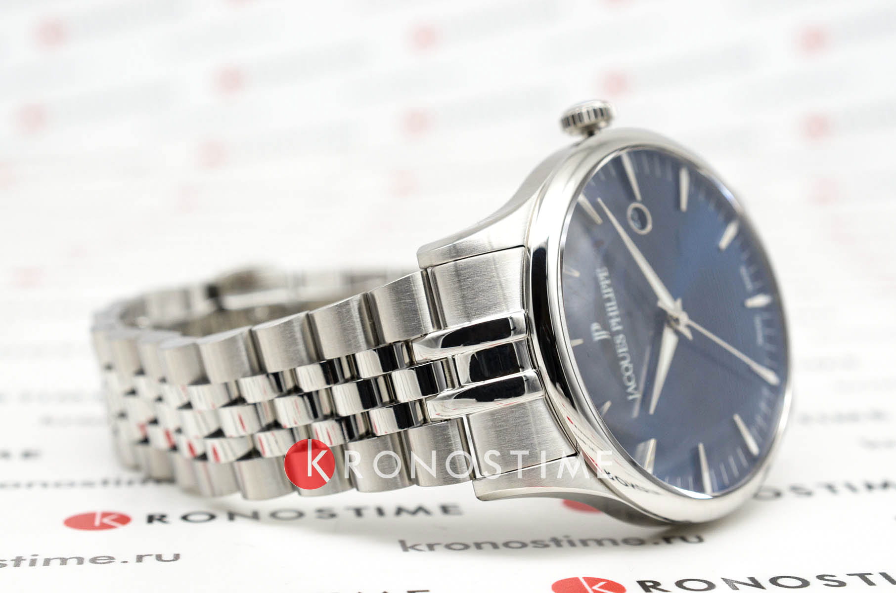 Jacques Philippe JPQGS661336 — стильные мужские часы в классическом формате с акцентом на надёжность и элегантность. Корпус круглой формы диаметром 40 мм из нержавеющей стали отличается утонченным силуэтом при толщине примерно 12 мм, обеспечивая комфорт при длительном ношении . Циферблат оформлен лаконично: тонкие стрелки и минималистичные часовые метки с люминесцентным покрытиемЛюминесцентное покрытиеПозволяет считывать показания времени в темноте. Производители наносят на стрелки, часовые индексы, безель или поверхность циферблата светонакопительный состав, дающий холодное свечение. подчёркивают строгий характер модели. Встроенная функция отображения даты придаёт часам практичность без лишнего визуального нагромождения. Поверхность защищает сапфировое стеклоСапфировое стеклоПрочный и надёжный материал из кристалла сапфира синтетического происхождения, характеризующийся особой твёрдостью и устойчивостью к царапинам и повреждениям. — устойчивое к царапинам и бликам. Внутри используется точный швейцарский кварцевый механизм, не требующий подзавода и сохраняющий стабильную работу без сложного обслуживания. Модель оснащена металлическим браслетом из нержавеющей стали в оттенке металлик‑серый на застёжке-бабочке с кнопкамиЗастёжка "бабочка"Такой вид застёжки дополняется предохранителями, помогающими избежать случайного раскрытия браслета. Обладают изящным исполнением. , ширина звеньев около 22 мм, что обеспечивает надёжную посадку и солидный внешний вид . Водозащита составляет до 5 ATM, — часы без проблем выдерживают случайный контакт с водой в повседневной эксплуатации . Jacques Philippe — гармоничное сочетание классического стиля, точного швейцарского кварца и практичности в одном надёжном аксессуаре.
