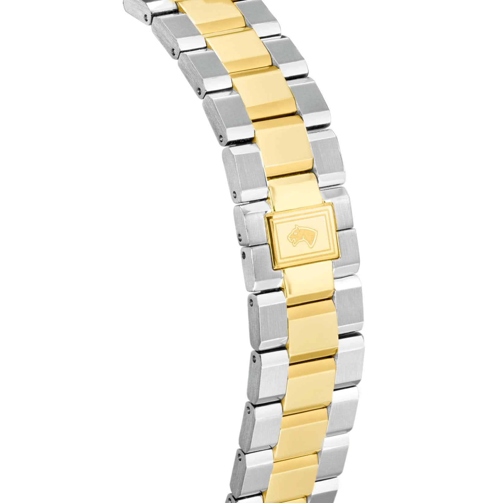 Часы Jaguar ESSENTIA J1043/3 - это воплощение элегантности и точности, созданное для современного мужчины. Эта швейцарская модель отличается изысканным дизайном и высоким качеством исполнения. Корпус часов выполнен из нержавеющей стали серебристого цвета, что придает им благородный и стильный вид. Циферблат защищен сапфировым стекломСапфировое стеклоПрочный и надёжный материал из кристалла сапфира синтетического происхождения, характеризующийся особой твёрдостью и устойчивостью к царапинам и повреждениям., которое славится своей прочностью и устойчивостью к царапинам, обеспечивая долговечность и безупречный внешний вид часов. Неподвижный золотистый безельБезельВнешний ободок, закрепляющий стекло. В спортивных часах так называется поворотное кольцо с делениями на циферблате, выполняет роль таймера – замеряет отрезки времени на шкале. Неподвижный безель – элемент декора. Однонаправленно вращающийся безель на дайверских часах позволяет фиксировать моменты погружения и выныривания на поверхность.. Браслет, также изготовленный из нержавеющей стали с золотистым PVD-покрытиемPVDУльтратонкое покрытие наносится в технике вакуумного напыления, сочетает в себе нитрид титана особой прочности со слоем золота или оксида хрома. Несёт в себе декоративную или защитную функцию., гармонично сочетается с корпусом, создавая целостный и утонченный образ. Диаметр корпуса составляет 40 мм, что делает часы идеальными для мужского запястья. Модель ESSENTIA J1043/3 оснащена швейцарским кварцевым механизмом, гарантирующим высокую точность хода, а также функцией отображения даты, что добавляет практичности этому стильному аксессуару. Часы Jaguar J1043/3 - это не просто инструмент для измерения времени, но и статусный аксессуар, который подчеркнет безупречный вкус и уверенность своего владельца. Они идеально подойдут как для деловых встреч, так и для особых случаев, всегда оставаясь верным спутником современного мужчины, ценящего качество и стиль. Браслет имеет скрытую застёжку «бабочка» с кнопкамиЗастёжка "бабочка"Такой вид застёжки дополняется предохранителями, помогающими избежать случайного раскрытия браслета. Обладают изящным исполнением. .