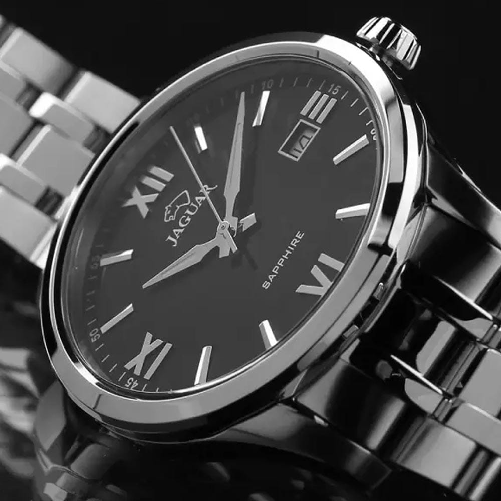 Мужские швейцарские часы Jaguar Acamar J964/4. Кварцевый швейцарский калибр Ronda 6003D. Сапфировое стеклоСапфировое стеклоПрочный и надёжный материал из кристалла сапфира синтетического происхождения, характеризующийся особой твёрдостью и устойчивостью к царапинам и повреждениям. устойчивое к мелким механическим повреждениям. Корпус и браслет часов изготовлены из нержавеющей стали. Окошко даты находится в положении 3 часа. Стрелки с люминесцентным покрытиемЛюминесцентное покрытиеПозволяет считывать показания времени в темноте. Производители наносят на стрелки, часовые индексы, безель или поверхность циферблата светонакопительный состав, дающий холодное свечение.. Класс водозащиты: 100 метров, позволит плавать, нырять и заниматься другими водными видами спорта. Стальной браслет на раскладной застёжкеРаскладная застёжкаТакой тип застёжки используется только на браслетах из металла. Она никогда не раскрывается полностью, происходит разделение на 2 и более частей. Раскладывающая застёжка снизит вероятность потери часов к минимуму..