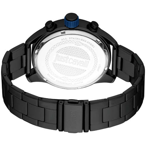 JUST CAVALLI JC1G347M0075 — стильные итальянские часы с функцией хронографаХронографФункция позволяет измерять отрезки времени с особой точностью: часы, минуты, секунды. Верным признаком хронографа является наличие на циферблате 3 дополнительных окошек-счётчиков., которые сочетают в себе элегантность и современный функционал. Круглый корпус диаметром 45 мм и толщиной 12 мм выполнен из нержавеющей стали с PVD-покрытиемPVDУльтратонкое покрытие наносится в технике вакуумного напыления, сочетает в себе нитрид титана особой прочности со слоем золота или оксида хрома. Несёт в себе декоративную или защитную функцию., что придает модели выразительный внешний вид и надежную защиту от внешних воздействий. Часы оснащены кварцевым механизмом. Минеральное стеклоМинеральное стеклоМинеральное стекло представляет собой искусственно выращенный минерал кварца. Такое стекло отличается особой устойчивостью к повреждениям и царапинам. Уступает по некоторым качествам сапфировому стеклу. защищает часы от царапин, а водозащита 100 метров позволяет не снимать их во время плавания и занятий спортом. Стальной браслет на раскладной застёжкеРаскладная застёжкаТакой тип застёжки используется только на браслетах из металла. Она никогда не раскрывается полностью, происходит разделение на 2 и более частей. Раскладывающая застёжка снизит вероятность потери часов к минимуму. обеспечивает комфортное ношение.  Эта модель — идеальный выбор для тех, кто ценит современные технологии , классический стиль и качество.
