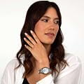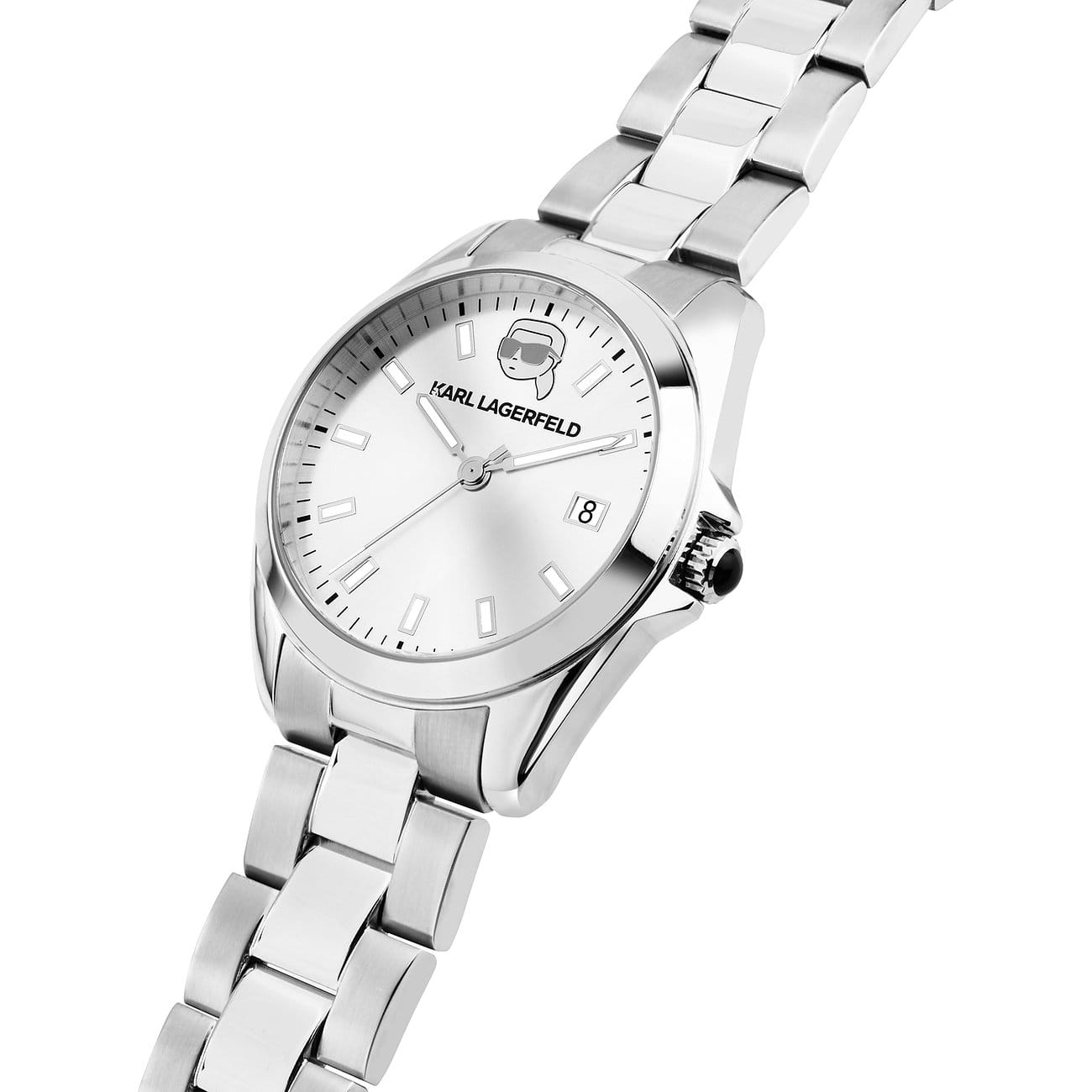 Женские элегантные часы Karl Lagerfeld Round Essentials R0553101517, кварцевый механизм с высокой точностью. Минеральное стеклоМинеральное стеклоМинеральное стекло представляет собой искусственно выращенный минерал кварца. Такое стекло отличается особой устойчивостью к повреждениям и царапинам. Уступает по некоторым качествам сапфировому стеклу. устойчивое к появлению царапин, обладающее высокой прозрачностью. Изысканный корпус изготовлен из нержавеющей стали. Лаконичные центральные часовая, минутная и секундная стрелки. Водонепроницаемость 5 АТМ позволяет использовать часы в повседневных условиях — при мытье рук или под лёгким дождём. Стальной браслет c раскладной застёжкойРаскладная застёжкаТакой тип застёжки используется только на браслетах из металла. Она никогда не раскрывается полностью, происходит разделение на 2 и более частей. Раскладывающая застёжка снизит вероятность потери часов к минимуму., обеспечивающей комфорт и уверенную фиксацию на запястье, а также добавляя завершающий штрих к этому стильному аксессуару. Стрелки и метки оснащены люминесцентным покрытиемЛюминесцентное покрытиеПозволяет считывать показания времени в темноте. Производители наносят на стрелки, часовые индексы, безель или поверхность циферблата светонакопительный состав, дающий холодное свечение., обеспечивающим хорошую читаемость в темноте. Циферблат подчёркивает изысканный характер часов, создавая универсальный образ, подходящий как для повседневных ситуаций, так и для особых случаев. Аккуратное окошко даты на отметке «3 часов».