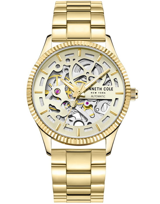 Женские наручные часы-скелетоны Kenneth Cole KCWLL2222407, механический механизм (автоматический калибр) с высокой точностью. Класс водозащиты: 30 метров, позволит защитить корпус от случайных брызг или капель дождя. Корпус часов изготовлен из стали с IP-покрытиемIP-покрытиеМетод ионного напыления. Демонстрирует повышенную устойчивость к истиранию, окислению и химическим веществам. Под воздействием высокого давления и температуры около 1500°C молекулы металла надёжно соединяются с частицами корпуса часов..