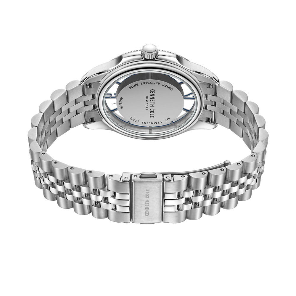 Мужские кварцевые часы с минеральным стекломМинеральное стеклоМинеральное стекло представляет собой искусственно выращенный минерал кварца. Такое стекло отличается особой устойчивостью к повреждениям и царапинам. Уступает по некоторым качествам сапфировому стеклу. Kenneth Cole Transparency KCWGG2233904, кварцевый механизм с высокой точностью. Класс водозащиты: 30 метров, позволит защитить корпус от случайных брызг или капель дождя. Корпус часов изготовлен из стали. Стальной браслет на раскладной застёжкеРаскладная застёжкаТакой тип застёжки используется только на браслетах из металла. Она никогда не раскрывается полностью, происходит разделение на 2 и более частей. Раскладывающая застёжка снизит вероятность потери часов к минимуму..