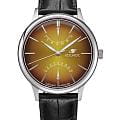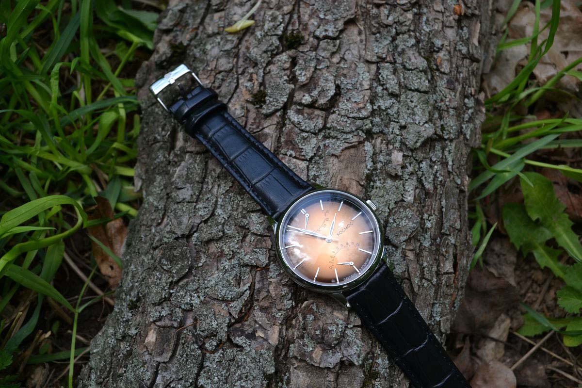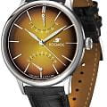 Мужские наручные часы Космос Космопорт K 058.11.37 — это сочетание традиций часового искусства 60-70-х годов и футуристического дизайна, вдохновленного космическими исследованиями. Они не только служат напоминанием о прошлом, но и побуждают задуматься о будущем, позволяя наслаждаться качеством и смыслом, вложенными в каждую деталь. Полированный корпус часов выполнен в виде силуэта летающей тарелки благодаря выпуклым формам стекла и нижней части корпуса. Стальные ушки, которые напоминают опоры летающей тарелки, завершает общий образ. На задней крышке часов выгравирован фантазийный сюжет – космическая станция будущего. Циферблат желтого цвета выполнен в ретро стиле с закруглёнными краями, что требует применения сложной технологии производства, характерной для часов прошлых лет. Кончик секундной стрелки повторяет эту форму, а на выпуклом градиентном циферблате выполнена шлифовка, напоминающая солнечные лучи. Индексы, изготовленные вручную и закрепленные на двух штифтах, добавляют изысканности. Также присутствуют ретроградные индикаторы даты и второго времени (24 часа), которые возвращаются в исходное положение одним движением. Люминесцентное покрытиеЛюминесцентное покрытиеПозволяет считывать показания времени в темноте. Производители наносят на стрелки, часовые индексы, безель или поверхность циферблата светонакопительный состав, дающий холодное свечение. на часовой и минутной стрелках, а также на стрелках ретроградных индикаторов и окантовке циферблата создает эффект светящегося ореола в темноте. Форма минерального стеклаМинеральное стеклоМинеральное стекло представляет собой искусственно выращенный минерал кварца. Такое стекло отличается особой устойчивостью к повреждениям и царапинам. Уступает по некоторым качествам сапфировому стеклу., представляющего собой двояковыпуклую конструкцию, тщательно проработана. Такое стекло не искажает изображение на циферблате, потому что внутренняя поверхность остаётся плоской, создавая эффект линзы. Производственный процесс для достижения двух параллельно изогнутых поверхностей очень сложен, и требуется высокая точность, чтобы избежать повреждения стекла. Ремешок из черной натуральной кожи оснащён креплениями, которые позволяют легко снимать и надевать его без использования дополнительных инструментов. Заводная головка, застежка и ремешок украшены фирменным логотипом, что подчеркивает индивидуальность и стиль этих часов.