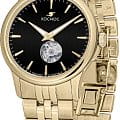 Мужские наручные часы Космос Телескоп K 304.20.31 — это уникальная лимитированная серия под названием Телескоп, посвящена аппарату приоткрывающего взгляду бескрайние дали космического пространства. Апертура открытого баланса модели по форме напоминает круглую линзу телескопа. Сквозь это окошко, расположенное на черном циферблате, также можно увидеть много интересного: ту самую систему «баланс-спираль» автоматического механизма, которая отвечает за точность хода. Корпус часов выполнен из нержавеющей стали с PVDPVDУльтратонкое покрытие наносится в технике вакуумного напыления, сочетает в себе нитрид титана особой прочности со слоем золота или оксида хрома. Несёт в себе декоративную или защитную функцию. покрытием, классической круглой формы и достаточно тонкий для механических моделей. Это стало возможным благодаря использованию механизма Miyota, калибр 9029, с высотой всего 3.9 мм. Циферблат декорирован вертикальной текстурой в ретро-стиле, по которой движутся крупные часовая и минутная стрелки, имеющие люминесцентное покрытиеЛюминесцентное покрытиеПозволяет считывать показания времени в темноте. Производители наносят на стрелки, часовые индексы, безель или поверхность циферблата светонакопительный состав, дающий холодное свечение., позволяющее определять время даже в темноте. Циферблат защищен прочным сапфировым стеклом с антибликовым покрытиемСапфировое стеклоПрочный и надёжный материал из кристалла сапфира синтетического происхождения, характеризующийся особой твёрдостью и устойчивостью к царапинам и повреждениям., обеспечивающим отличную читаемость показаний в любых условиях. Прозрачная задняя крышка, закрепленная на четырех винтах, демонстрирует механизм и содержит выгравированный индивидуальный номер экземпляра хх/50, отражающий лимитированный тираж всего в 50 штук. Браслет изготовлен из нержавеющей стали с PVDPVDУльтратонкое покрытие наносится в технике вакуумного напыления, сочетает в себе нитрид титана особой прочности со слоем золота или оксида хрома. Несёт в себе декоративную или защитную функцию. покрытием и оснащен удобной застёжкой «бабочка» с кнопкамиЗастёжка "бабочка"Такой вид застёжки дополняется предохранителями, помогающими избежать случайного раскрытия браслета. Обладают изящным исполнением. , которая сводит к минимуму вероятность потери. Модель Телескоп сочетает классический дизайн и универсальность, прекрасно подходя как к деловому костюму, так и к более повседневным образам.