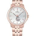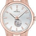 Мужские наручные часы Космос Телескоп K 304.40.33 — это уникальная лимитированная серия под названием Телескоп, посвящена аппарату приоткрывающего взгляду бескрайние дали космического пространства. Апертура открытого баланса модели по форме напоминает круглую линзу телескопа. Сквозь это окошко, расположенное на серебристом циферблате, также можно увидеть много интересного: ту самую систему «баланс-спираль» автоматического механизма, которая отвечает за точность хода. Корпус часов выполнен из нержавеющей стали с PVDPVDУльтратонкое покрытие наносится в технике вакуумного напыления, сочетает в себе нитрид титана особой прочности со слоем золота или оксида хрома. Несёт в себе декоративную или защитную функцию. покрытием, классической круглой формы и достаточно тонкий для механических моделей. Это стало возможным благодаря использованию механизма Miyota, калибр 9029, с высотой всего 3.9 мм. Циферблат декорирован вертикальной текстурой в ретро-стиле, по которой движутся крупные часовая и минутная стрелки, имеющие люминесцентное покрытиеЛюминесцентное покрытиеПозволяет считывать показания времени в темноте. Производители наносят на стрелки, часовые индексы, безель или поверхность циферблата светонакопительный состав, дающий холодное свечение., позволяющее определять время даже в темноте. Циферблат защищен прочным сапфировым стеклом с антибликовым покрытиемСапфировое стеклоПрочный и надёжный материал из кристалла сапфира синтетического происхождения, характеризующийся особой твёрдостью и устойчивостью к царапинам и повреждениям., обеспечивающим отличную читаемость показаний в любых условиях. Прозрачная задняя крышка, закрепленная на четырех винтах, демонстрирует механизм и содержит выгравированный индивидуальный номер экземпляра хх/50, отражающий лимитированный тираж всего в 50 штук. Браслет изготовлен из нержавеющей стали с PVDPVDУльтратонкое покрытие наносится в технике вакуумного напыления, сочетает в себе нитрид титана особой прочности со слоем золота или оксида хрома. Несёт в себе декоративную или защитную функцию. покрытием и оснащен удобной застёжкой «бабочка» с кнопкамиЗастёжка "бабочка"Такой вид застёжки дополняется предохранителями, помогающими избежать случайного раскрытия браслета. Обладают изящным исполнением. , которая сводит к минимуму вероятность потери. Модель Телескоп сочетает классический дизайн и универсальность, прекрасно подходя как к деловому костюму, так и к более повседневным образам.