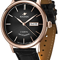 Мужские наручные часы Космос Телескоп K 304.41.31 —  это уникальная лимитированная серия под названием Телескоп, посвящена аппарату приоткрывающего взгляду бескрайние дали космического пространства. Апертура открытого баланса модели по форме напоминает круглую линзу телескопа. Сквозь это окошко, расположенное на черном циферблате, также можно увидеть много интересного: ту самую систему «баланс-спираль» автоматического механизма, которая отвечает за точность хода. Корпус часов выполнен из нержавеющей стали с PVDPVDУльтратонкое покрытие наносится в технике вакуумного напыления, сочетает в себе нитрид титана особой прочности со слоем золота или оксида хрома. Несёт в себе декоративную или защитную функцию. покрытием, классической круглой формы и достаточно тонкий для механических моделей. Это стало возможным благодаря использованию механизма Miyota, калибр 9029, с высотой всего 3.9 мм. Циферблат декорирован вертикальной текстурой в ретро-стиле, по которой движутся крупные часовая и минутная стрелки, имеющие люминесцентное покрытиеЛюминесцентное покрытиеПозволяет считывать показания времени в темноте. Производители наносят на стрелки, часовые индексы, безель или поверхность циферблата светонакопительный состав, дающий холодное свечение., позволяющее определять время даже в темноте. Циферблат защищен прочным сапфировым стеклом с антибликовым покрытиемСапфировое стеклоПрочный и надёжный материал из кристалла сапфира синтетического происхождения, характеризующийся особой твёрдостью и устойчивостью к царапинам и повреждениям., обеспечивающим отличную читаемость показаний в любых условиях. Прозрачная задняя крышка, закрепленная на четырех винтах, демонстрирует механизм и содержит выгравированный индивидуальный номер экземпляра  хх/50, отражающий лимитированный тираж всего в 50 штук. Ремешок часов сделан из натуральной кожи черного цвета и оснащен удобной застёжкой «бабочка» с кнопкамиЗастёжка "бабочка"Такой вид застёжки дополняется предохранителями, помогающими избежать случайного раскрытия браслета. Обладают изящным исполнением. , которая сводит к минимуму вероятность потери. Модель Телескоп сочетает классический дизайн и универсальность, прекрасно подходя как к деловому костюму, так и к более повседневным образам.
