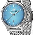 Женские наручные часы Космос Созвездие K 601.10.39 — это сочетание традиций часового искусства 60-70-х годов и футуристического дизайна, вдохновленного космическими исследованиями. Они не только служат напоминанием о прошлом, но и побуждают задуматься о будущем, позволяя наслаждаться качеством и смыслом, вложенными в каждую деталь. Полированный корпус часов выполнен в виде силуэта летающей тарелки благодаря выпуклым формам стекла и нижней части корпуса. Стальные ушки, которые напоминают опоры летающей тарелки, завершает общий образ. На задней крышке часов выгравирован фантазийный сюжет – космическая станция будущего. Название коллекции Созвездие – идеально отражает разнообразие моделей с яркими, но тщательно подобранными цветами. Циферблат выполнен в ретро стиле, с выгнутыми краями, что требует применения сложной производственной технологии. Такой дизайн был характерен для часов прошлых лет. Кончик секундной стрелки также изогнут, следуя форме циферблата. Выпуклый градиентный циферблат украшен шлифовкой в стиле солнечных лучей и ручными индексами, которые фиксируются на двух штифтах. Окошко даты обрамлено стальной рамкой, что добавляет часам утонченности и элегантности. Часовая и минутная стрелки, а также круг по краю циферблата, напоминающий ореол Земли, с  люминесцентным покрытиемЛюминесцентное покрытиеПозволяет считывать показания времени в темноте. Производители наносят на стрелки, часовые индексы, безель или поверхность циферблата светонакопительный состав, дающий холодное свечение., которое светится в темноте, создавая завораживающий эффект. Форма минерального стеклаМинеральное стеклоМинеральное стекло представляет собой искусственно выращенный минерал кварца. Такое стекло отличается особой устойчивостью к повреждениям и царапинам. Уступает по некоторым качествам сапфировому стеклу. тщательно продумана: оно выгнуто как снаружи, так и изнутри. Такая конструкция исключает искажения изображения на циферблате, в отличие от обычного стекла. Часы оснащены гибким и прочным браслетом из миланского плетения. Заводная головка, застежка и ремешок украшены фирменным логотипом.