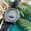 Российские кварцевые часы Космос K 617.11.33 оснащены механизмом калибра Seiko TMI. Круглый корпус из стали диаметром 33 мм защищен минеральным стекломМинеральное стеклоМинеральное стекло представляет собой искусственно выращенный минерал кварца. Такое стекло отличается особой устойчивостью к повреждениям и царапинам. Уступает по некоторым качествам сапфировому стеклу. повышенной прочности. Серебристый циферблат дополнен индикатором день/ночь, а стрелки с люминесцентным покрытиемЛюминесцентное покрытиеПозволяет считывать показания времени в темноте. Производители наносят на стрелки, часовые индексы, безель или поверхность циферблата светонакопительный состав, дающий холодное свечение. обеспечивают хорошую видимость в темное время суток. Часы имеют водонепроницаемость 50 метров, позволит защитить корпус от случайных брызг или капель дождя. Модель комплектуется кожаным ремешком на стандартной застежке. Элегантный дизайн и высокое качество материалов делают эти часы универсальным выбором для повседневного использования, подчеркивая стиль и практичность.